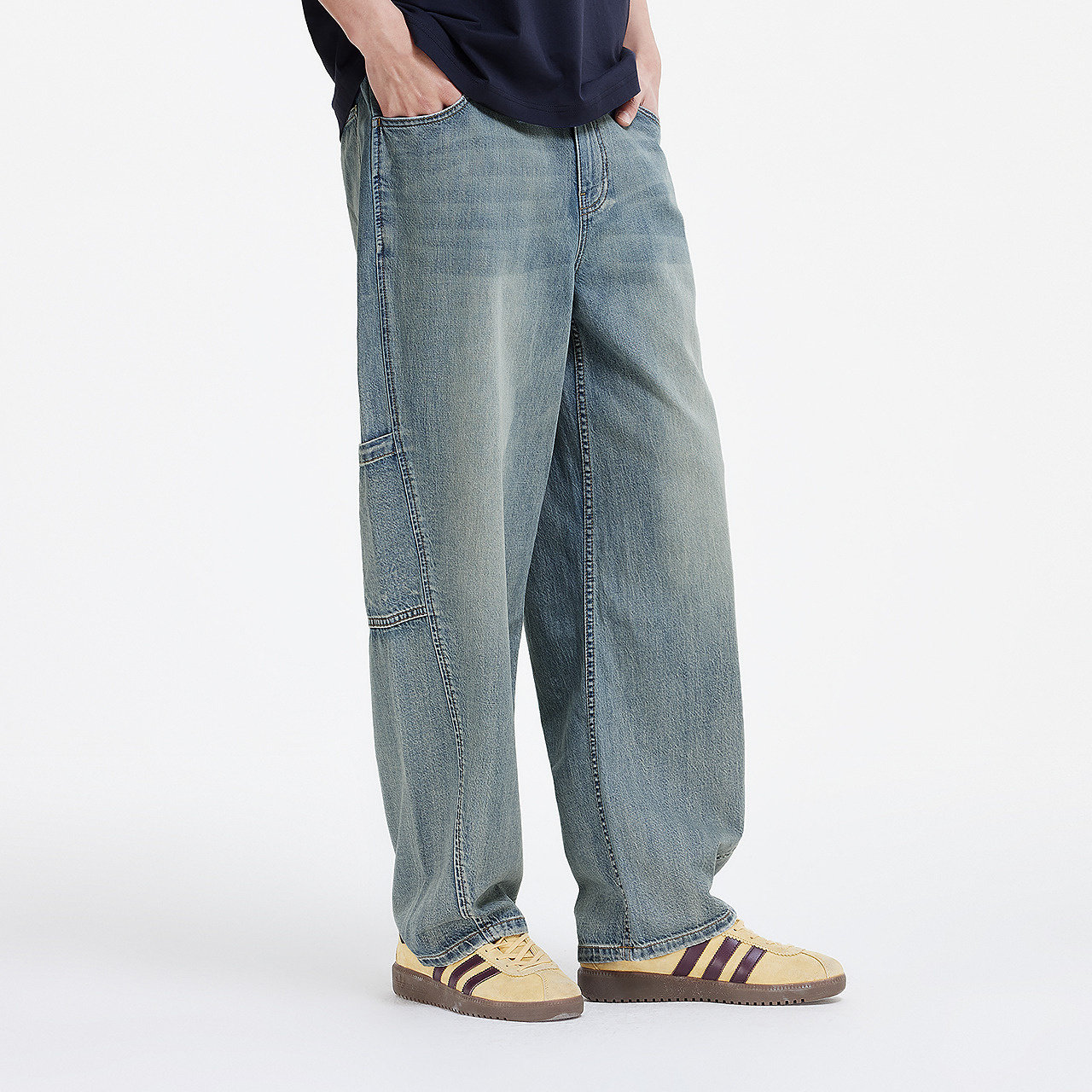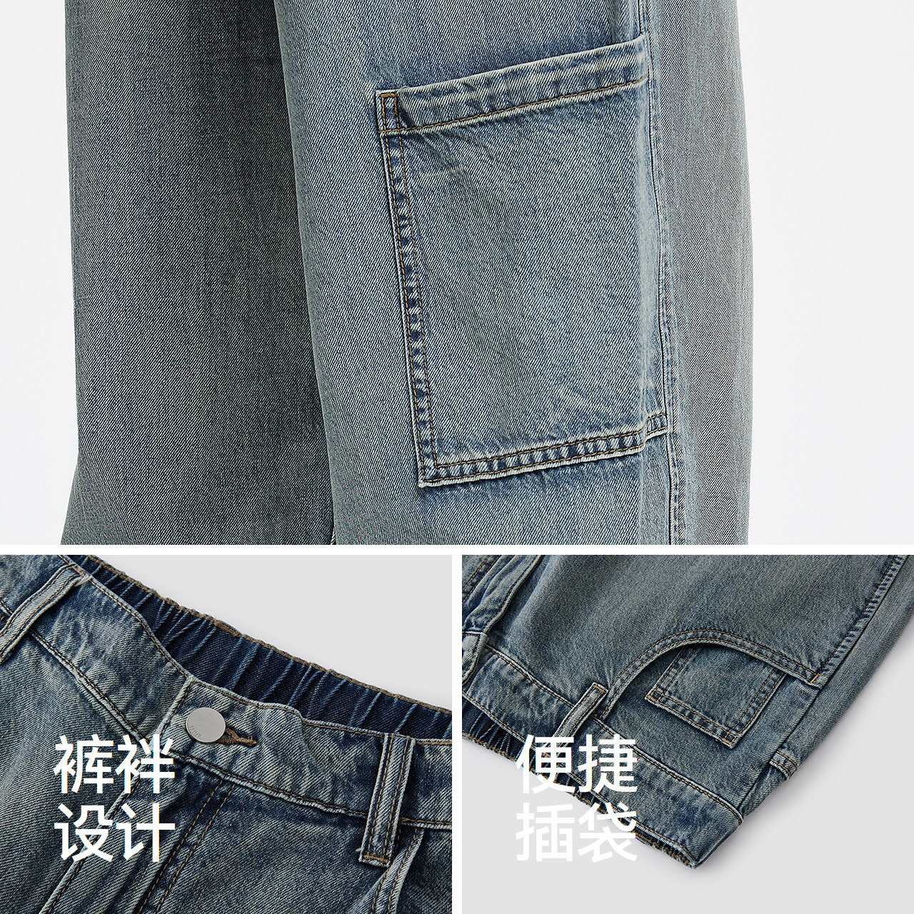 微阔直筒牛仔裤 复古工装裤