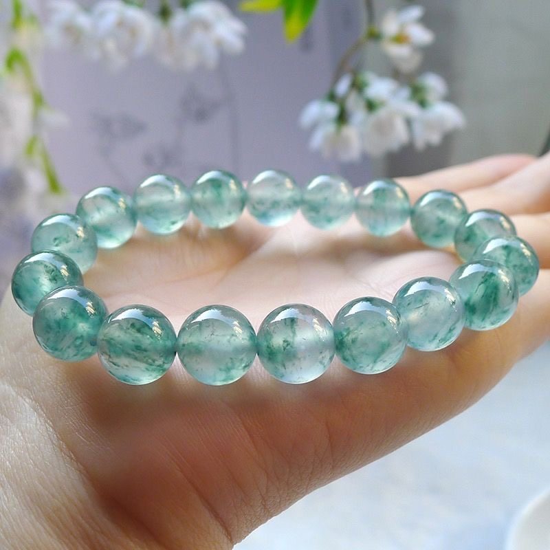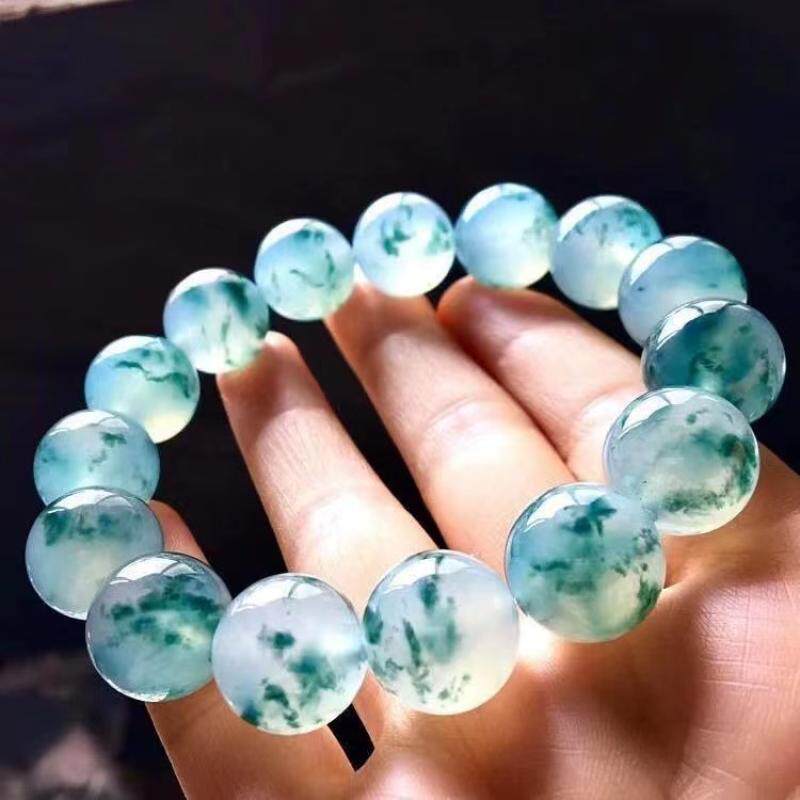 高冰种晴水底老坑翡翠色手链飘花蓝水手串仿天山翠翡翠送女友礼物