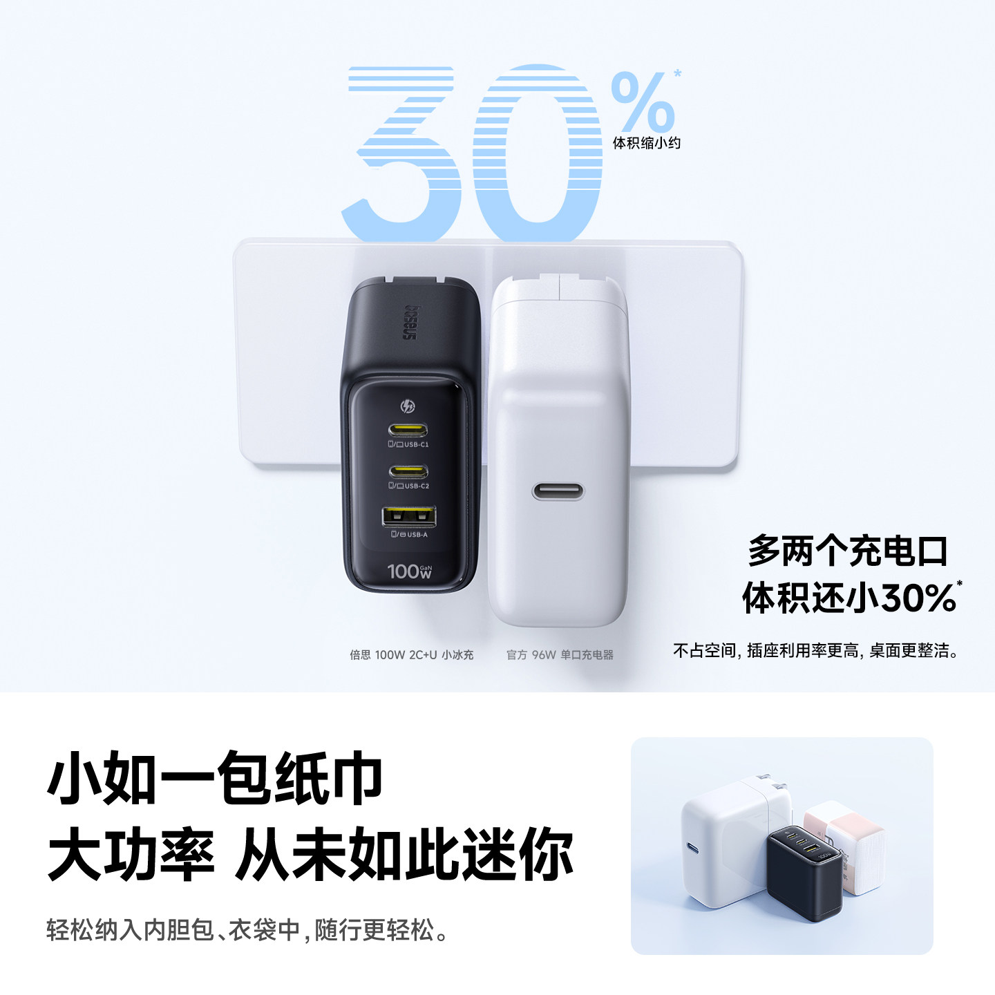 倍思100W氮化镓充电器多口充电头插头Type-C快充无人机笔记本电脑USB适用苹果17promax手机安卓