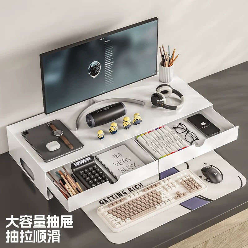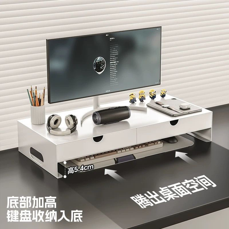 电脑笔记本增高架办公室桌面收纳置物架台式显示器垫高支架带抽屉