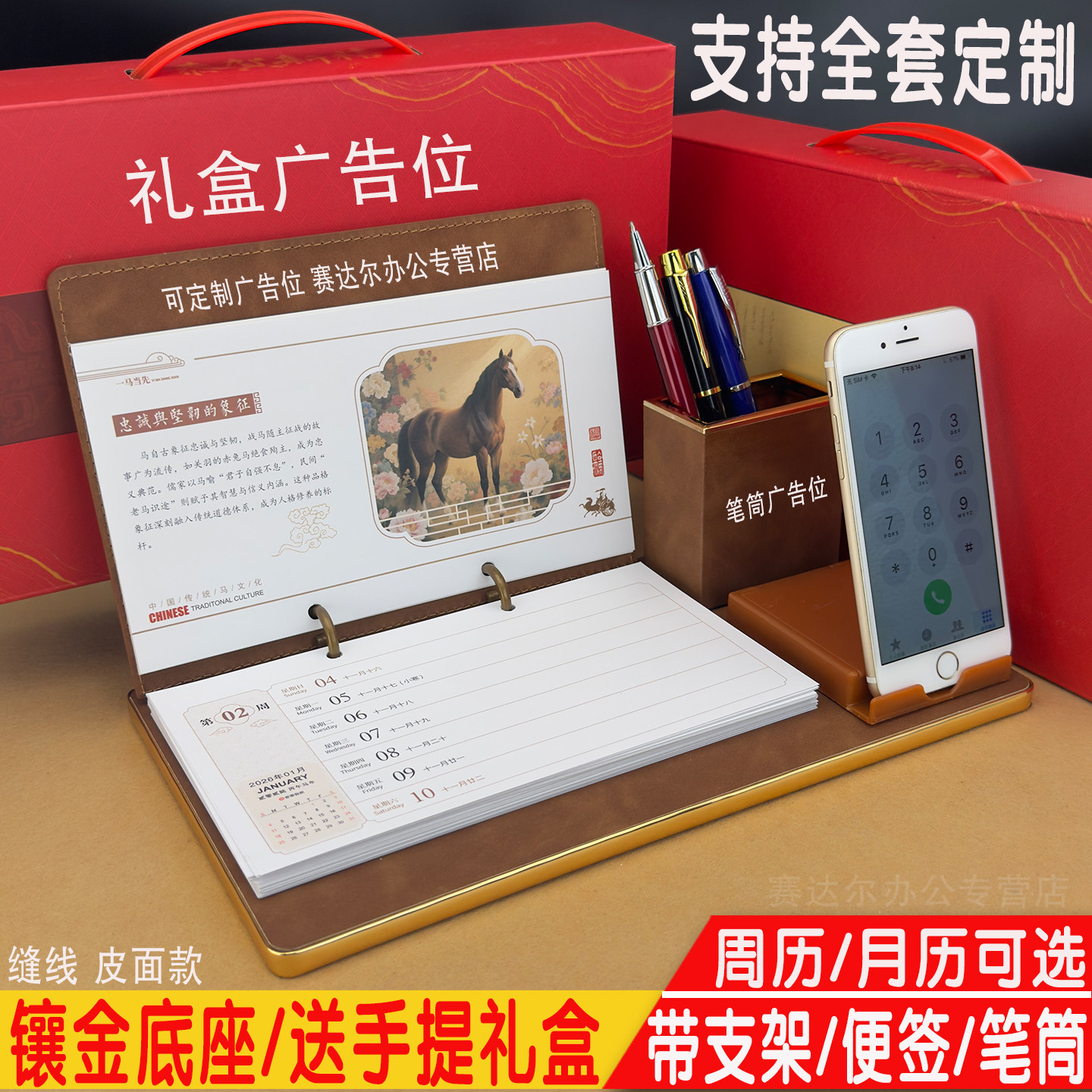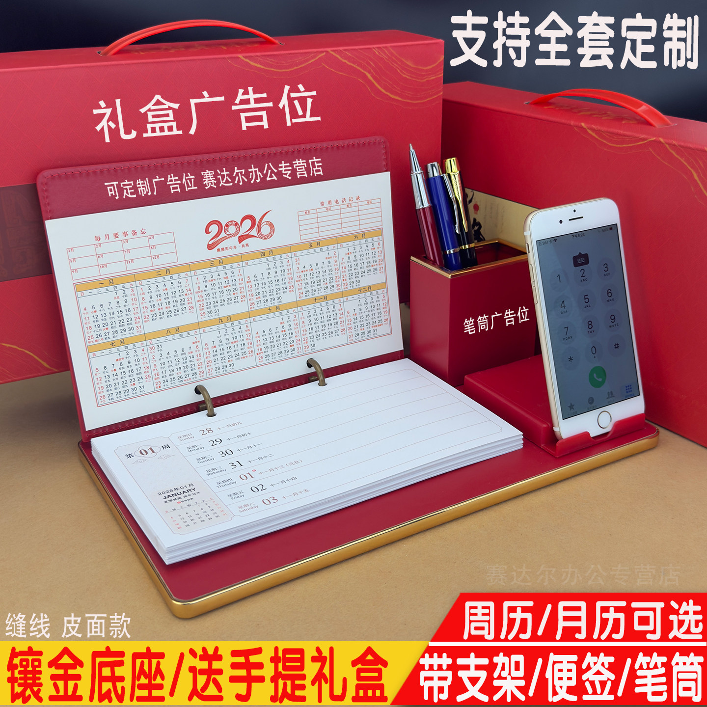 2026年台历礼盒装高档坐历皮面周历周计划马年多功能笔筒台座历记事日历年历保险银行物流新年历单位工作定制