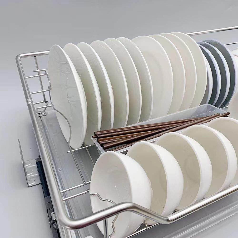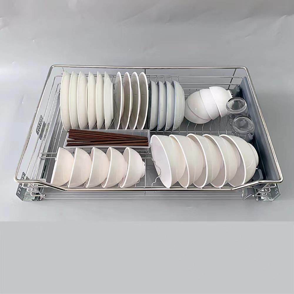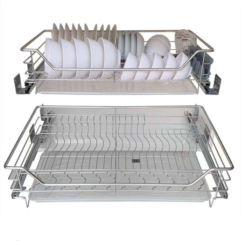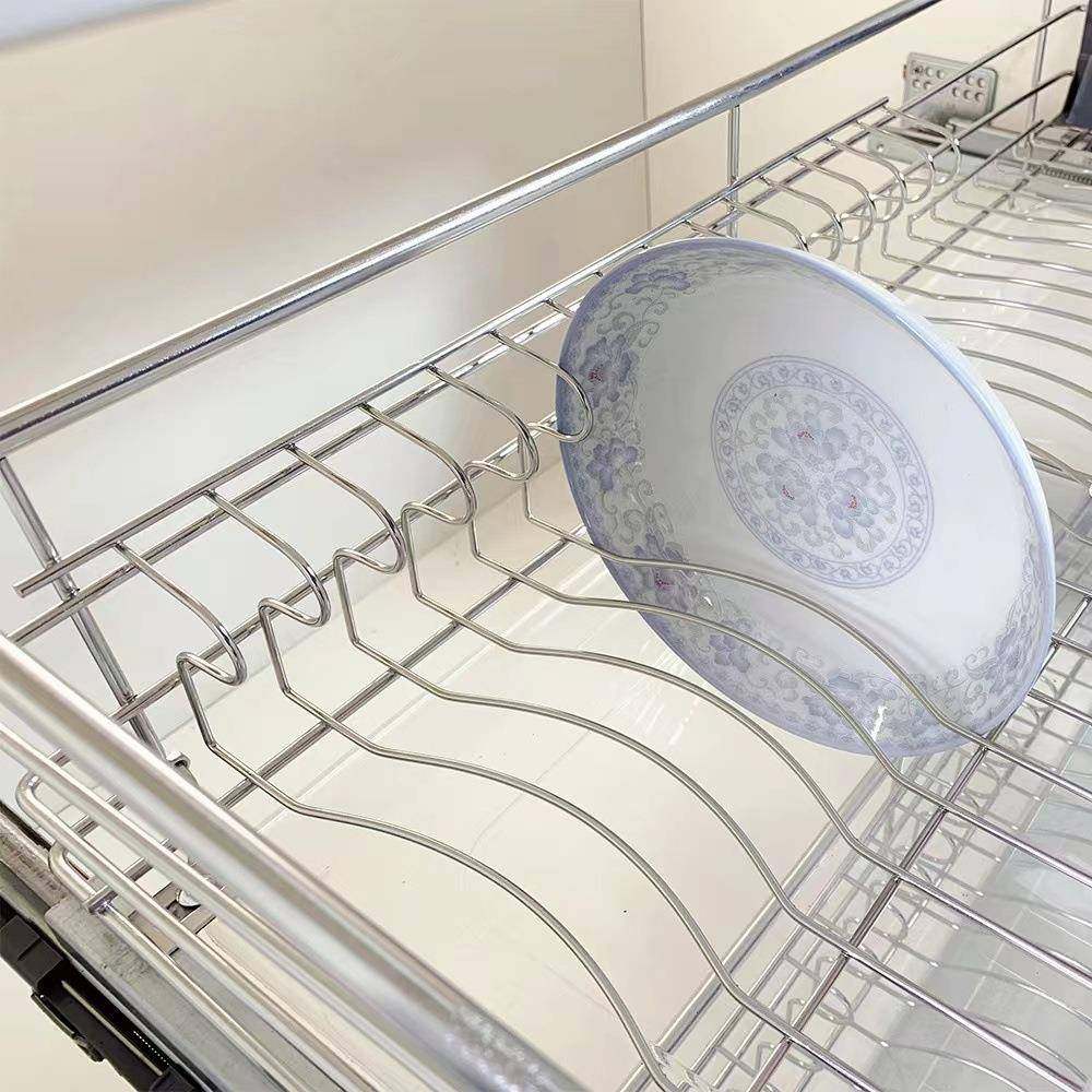 厨房橱柜拉篮304不锈钢双层缓冲抽屉式碗篮厨柜调味收纳碗架内置