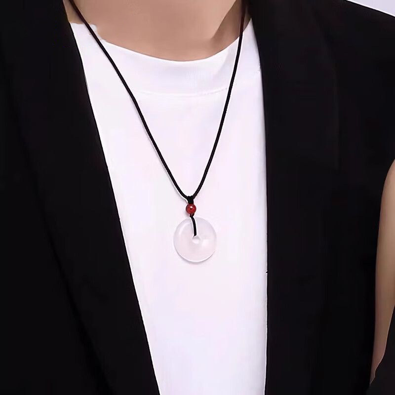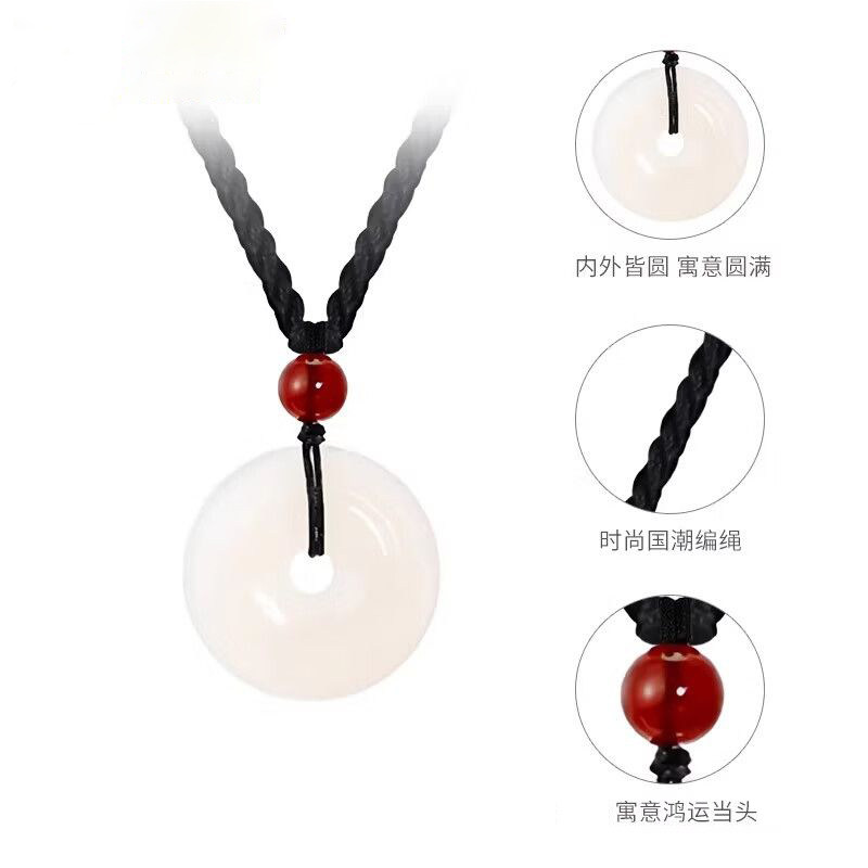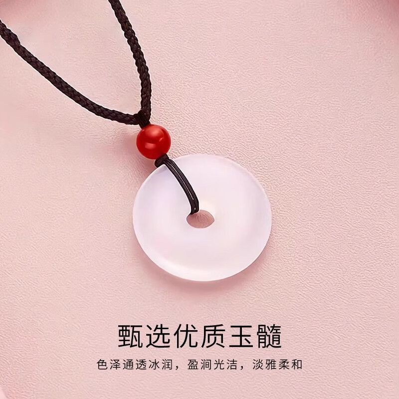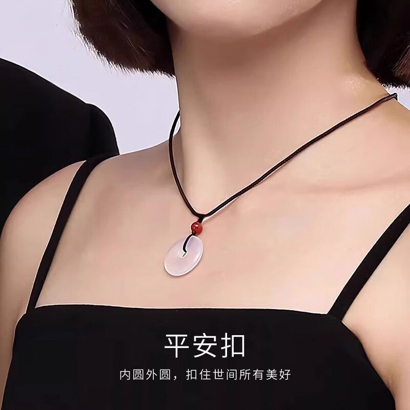 2026新款天然冰种玉髓平安扣吊坠项链女款国风编织绳转运珠颈链