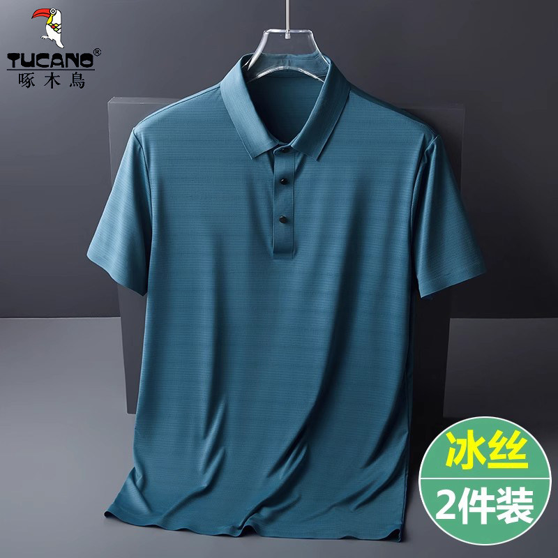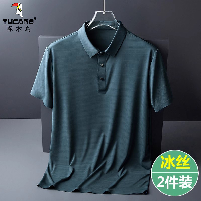 啄木鸟男士短袖t恤夏季冰丝polo衫中老年人半袖爸爸夏装T速干上衣