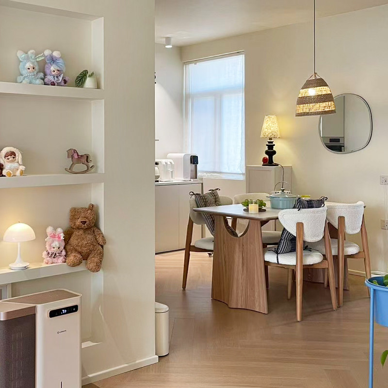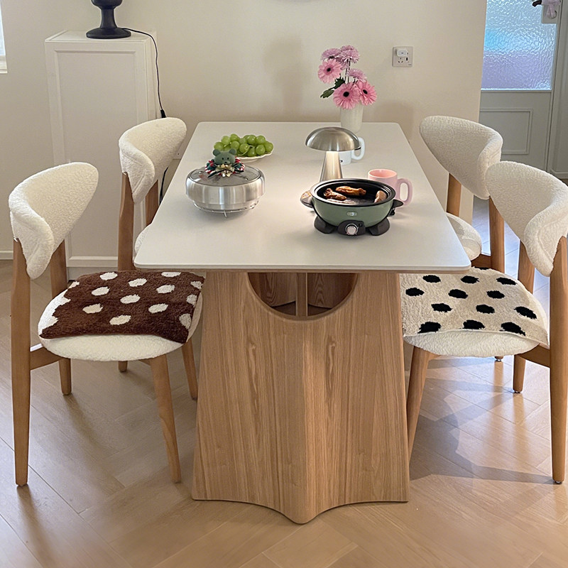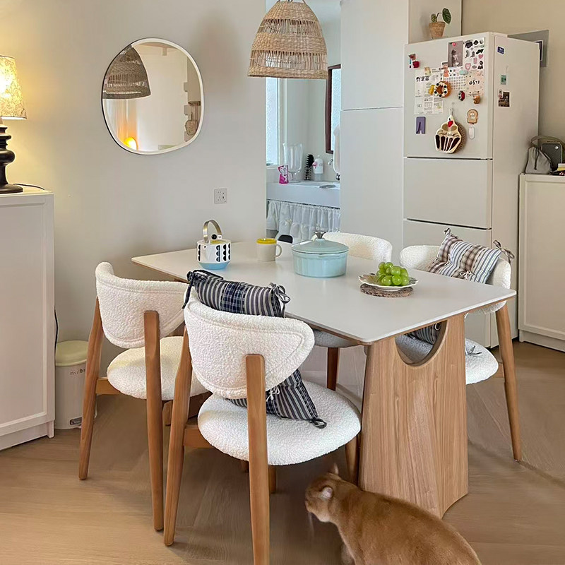 奶油原木风餐桌长方形家用小户型一桌四椅高级感轻奢实木岩板餐桌