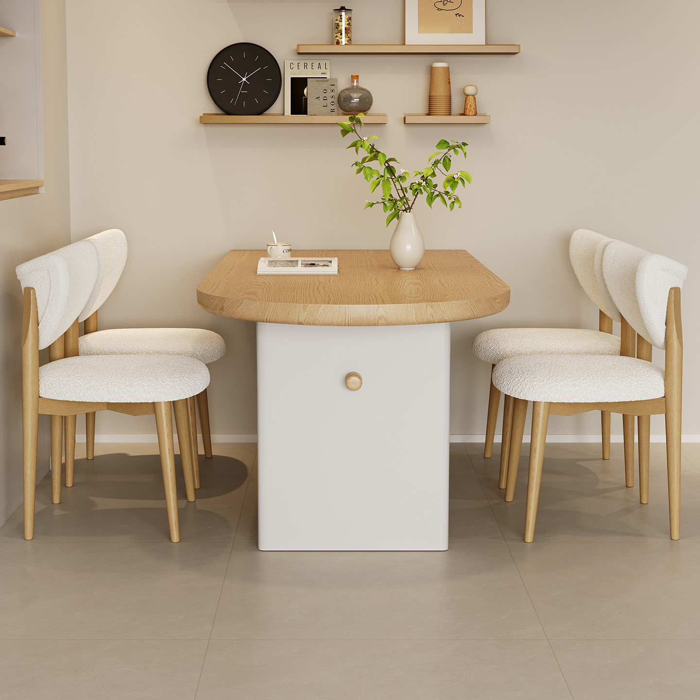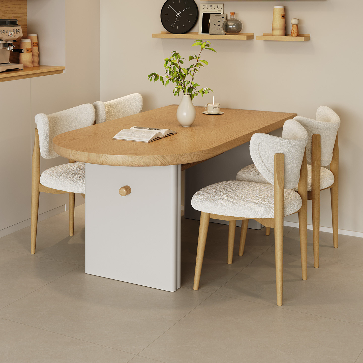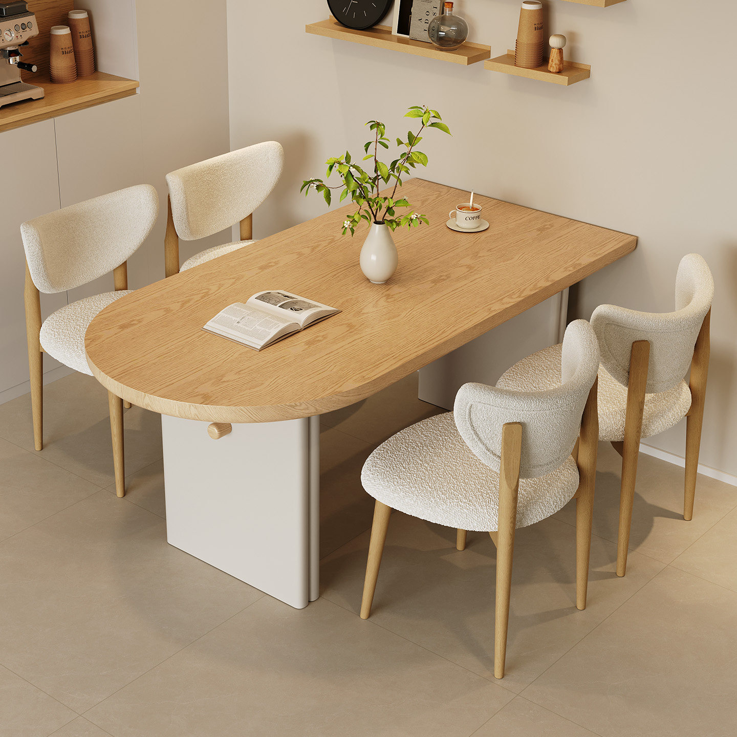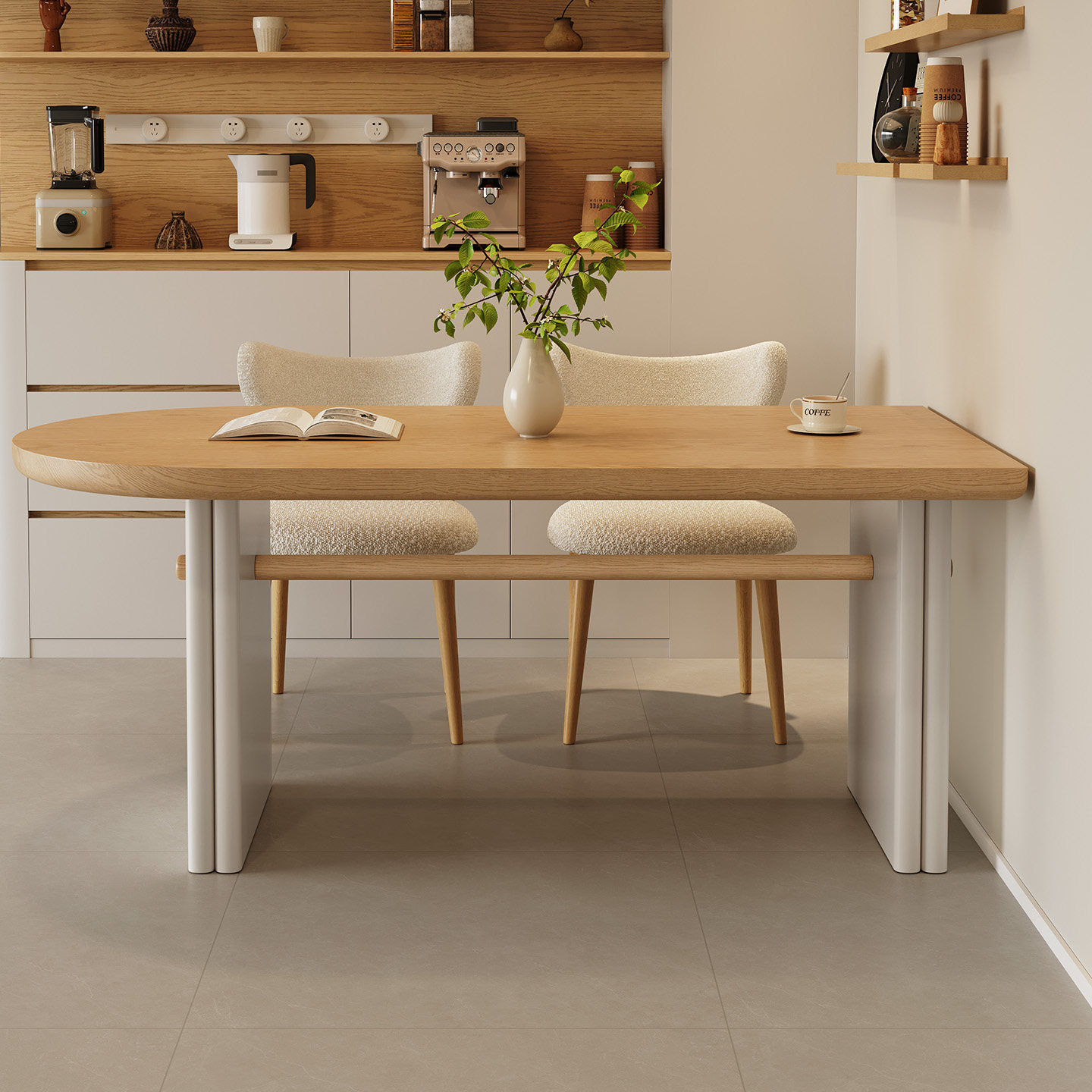 奶油原木风餐桌小户型家用2026新款半圆长方形靠墙岛台实木大板桌