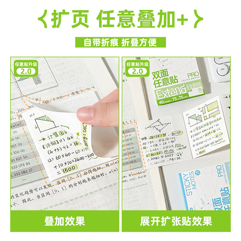 任意扩张贴便利贴不遮挡文字透明可折叠考研小学生用可撕有粘性便签贴纸初高中生记笔记贴订正错题办公便利贴