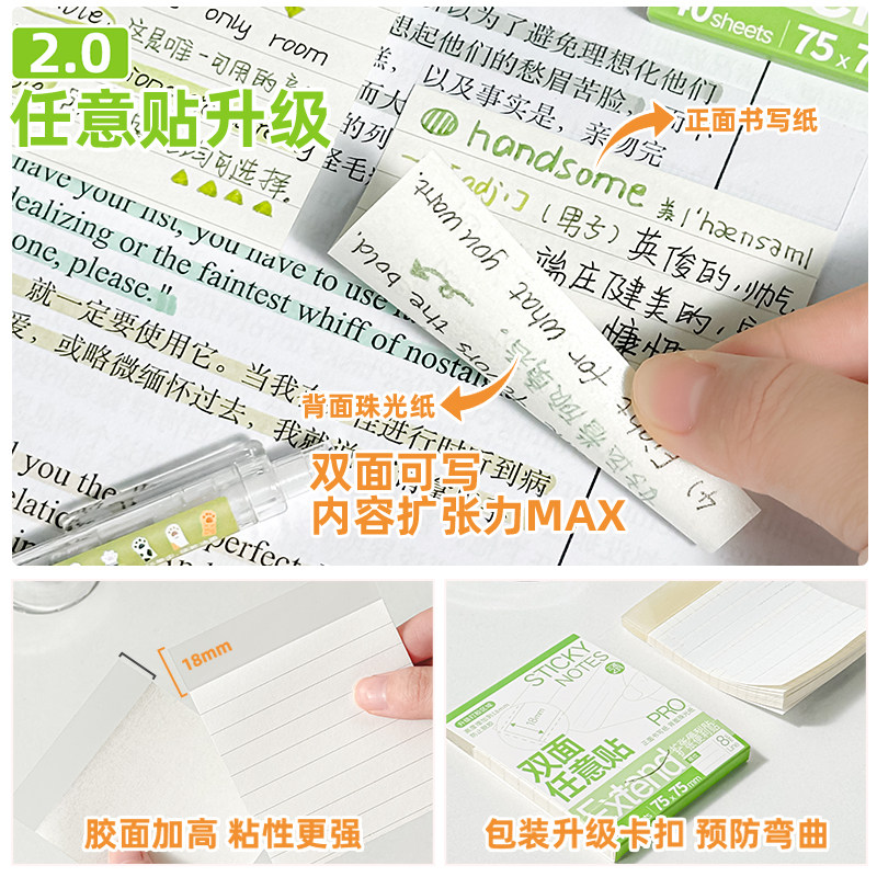 三年二班 双面书写任意贴便利贴粘性强不遮挡学生用便签纸本重点标记做笔记初高中生专用速干高颜值办公用F