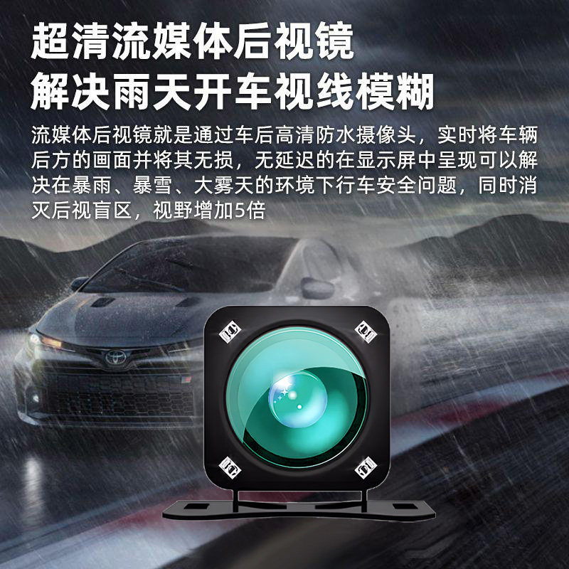 汽车后视镜行车记录仪2025新款免走线前后双摄车载倒车影像电子狗