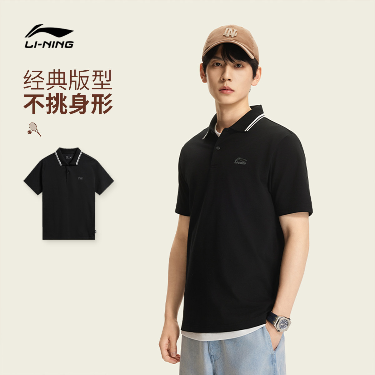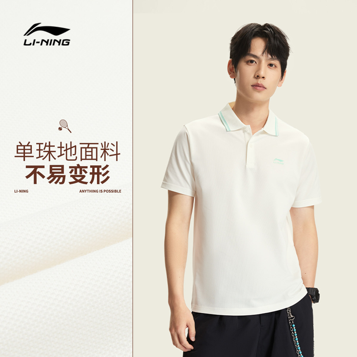李宁POLO衫男春夏2026新款冰感商务男装休闲上衣翻领短袖运动T恤