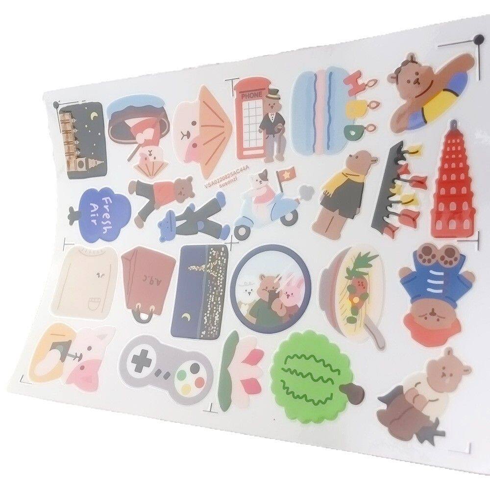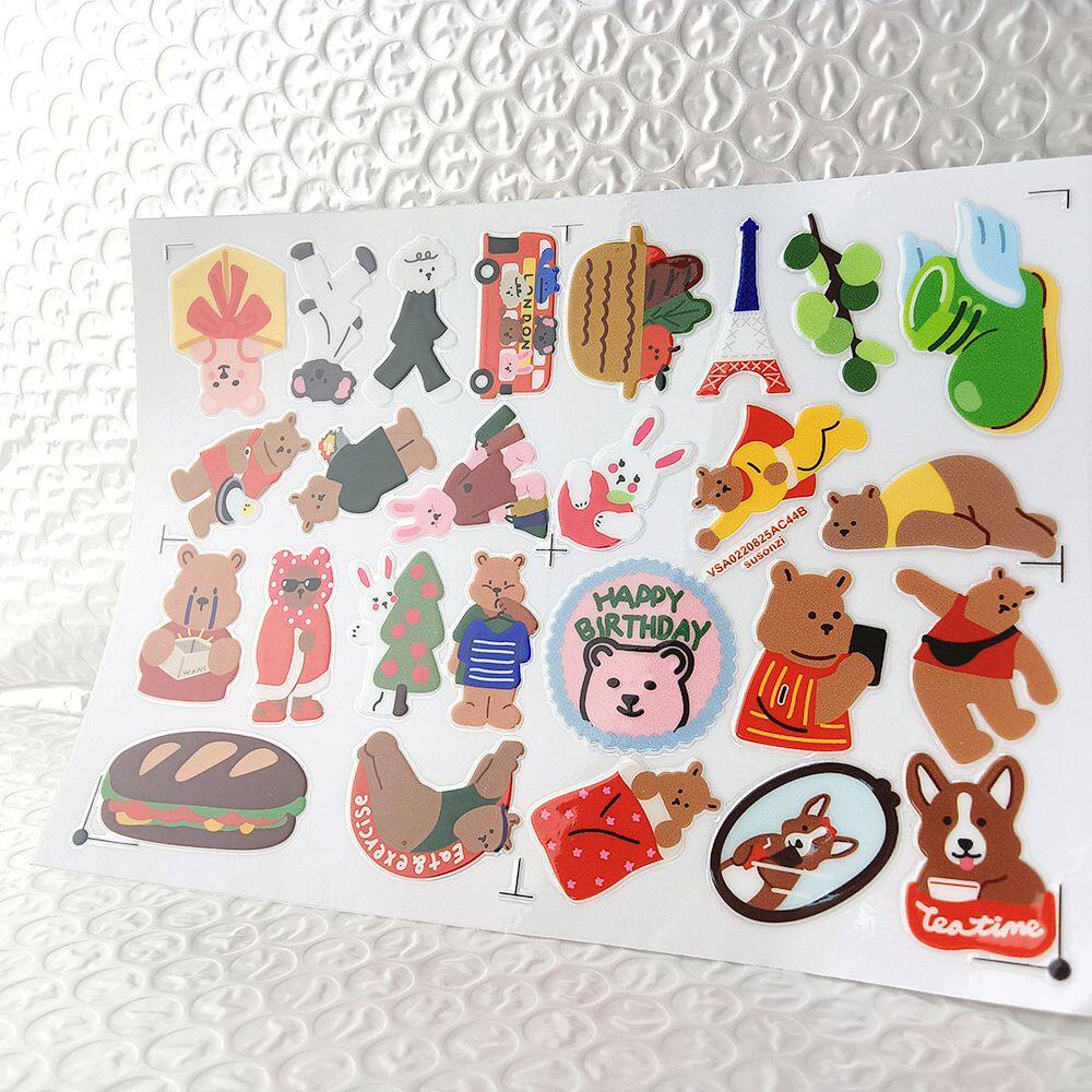卡通小熊涂鸦镂空立体防水牙刷水杯装饰贴纸UV转印贴纸水晶标定制