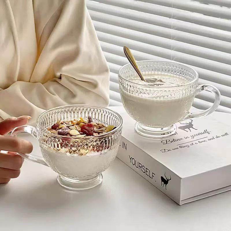 玻璃杯带把手大容量早餐杯喝水杯家用套装牛奶咖啡杯子女新款2024