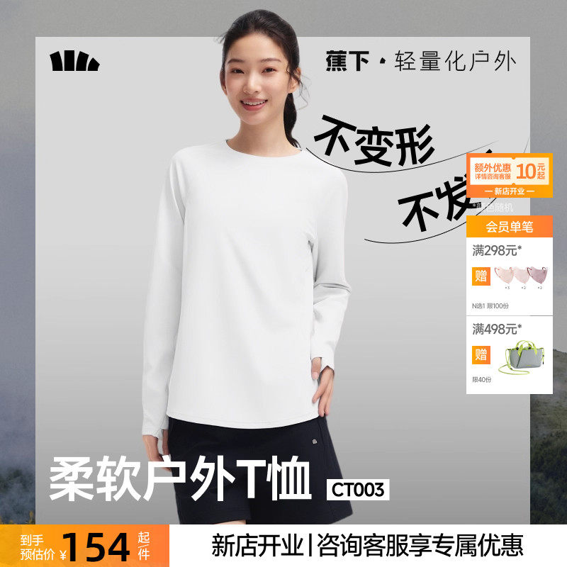 蕉下女士速干T恤白色宽松打底衫秋季内搭柔软肌底衣户外长袖上衣