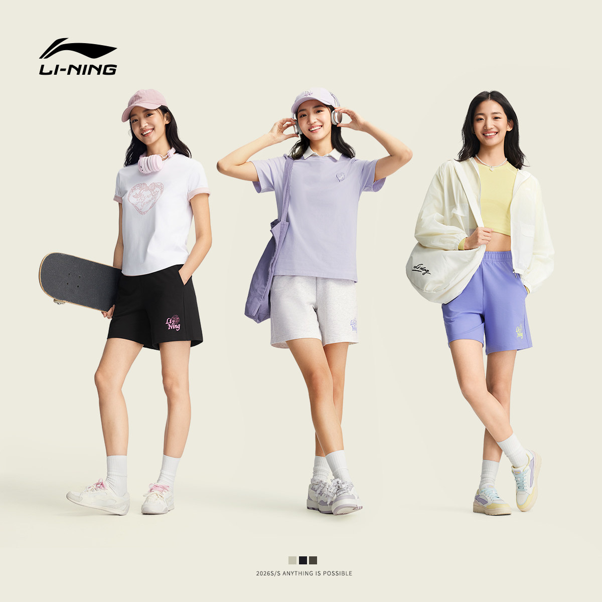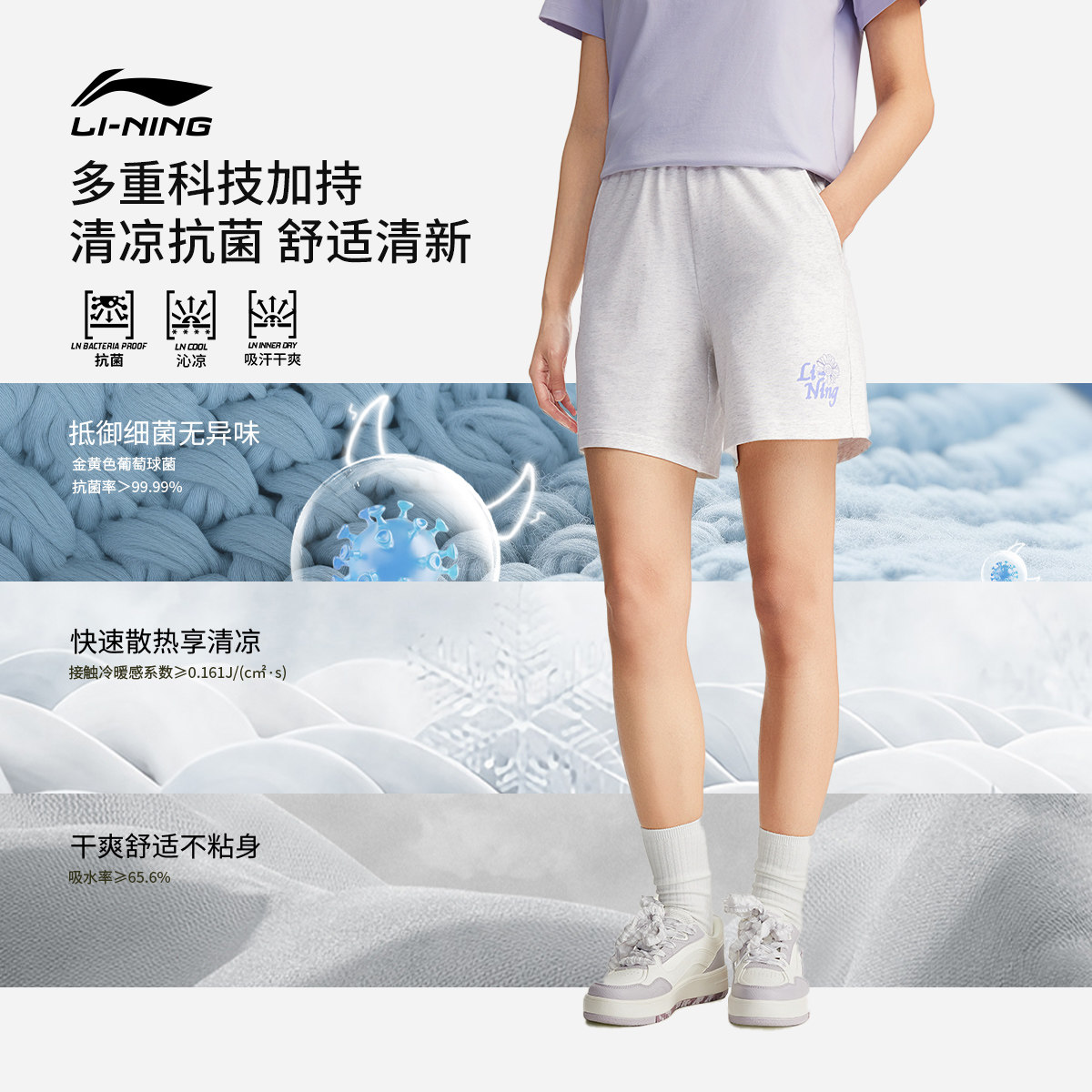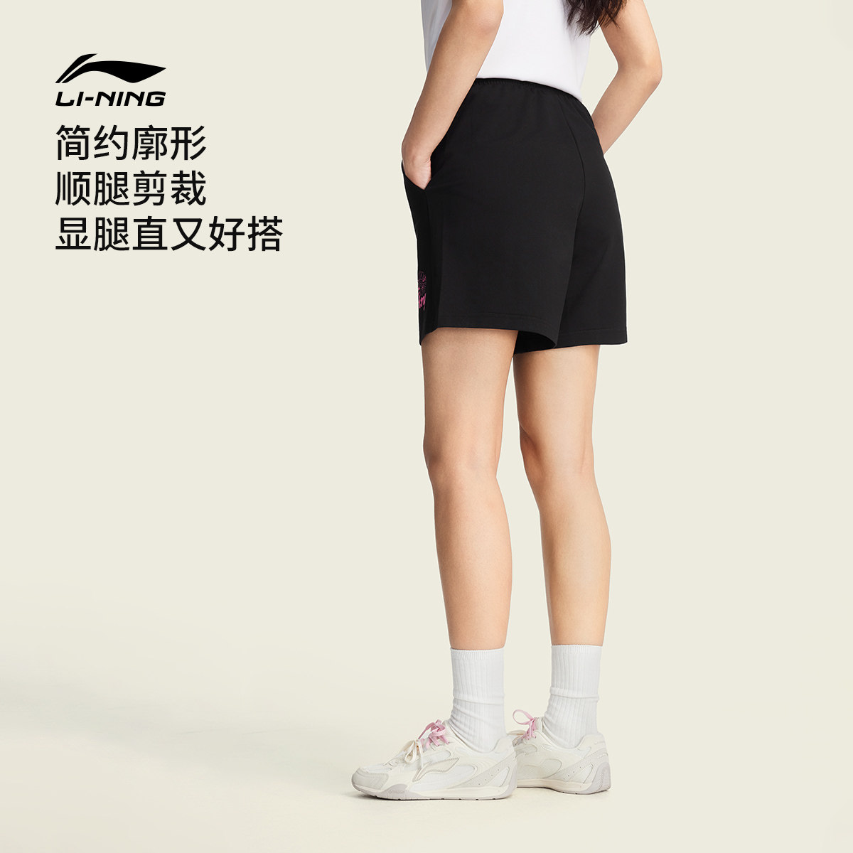 李宁短卫裤女士新款凉感吸湿排汗黑色短裤休闲裤子夏季印花运动裤