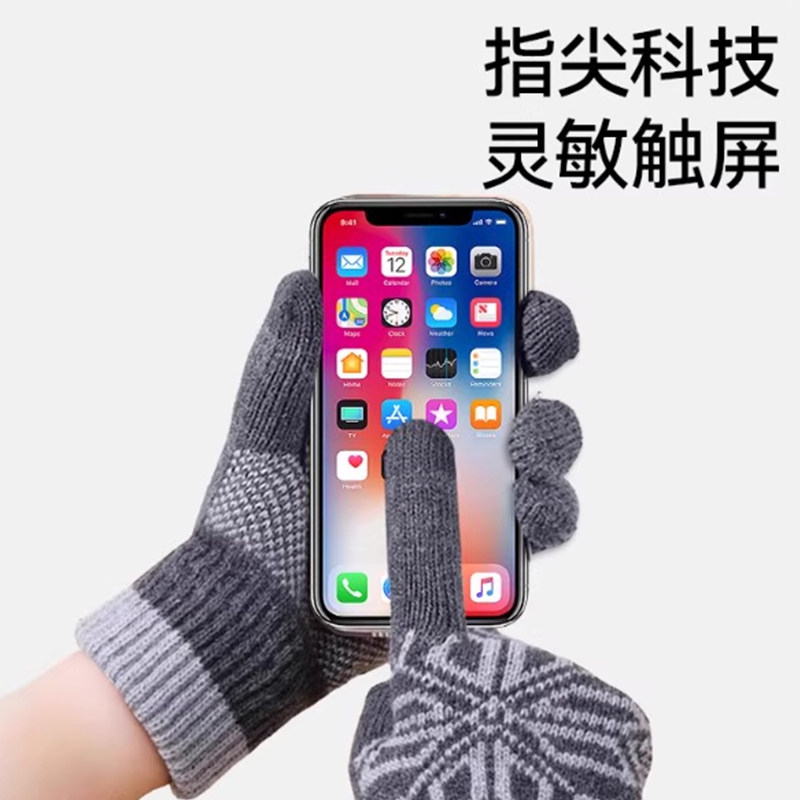手套冬女可爱保暖加绒防寒韩版学生触屏针织提花保暖手套男骑行