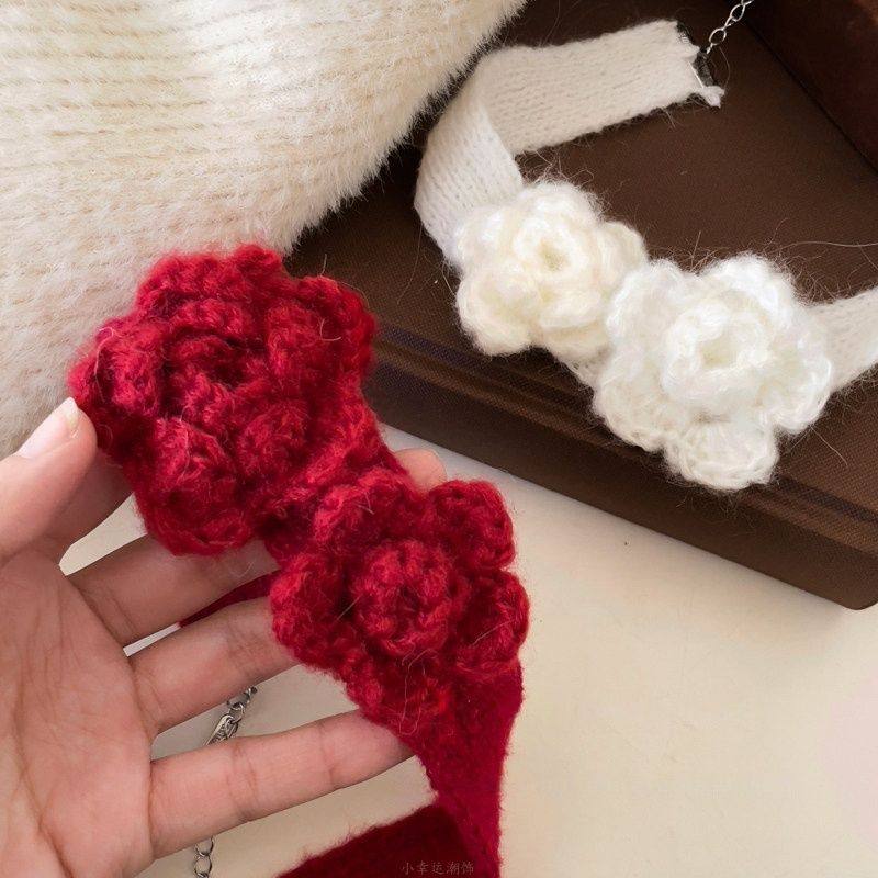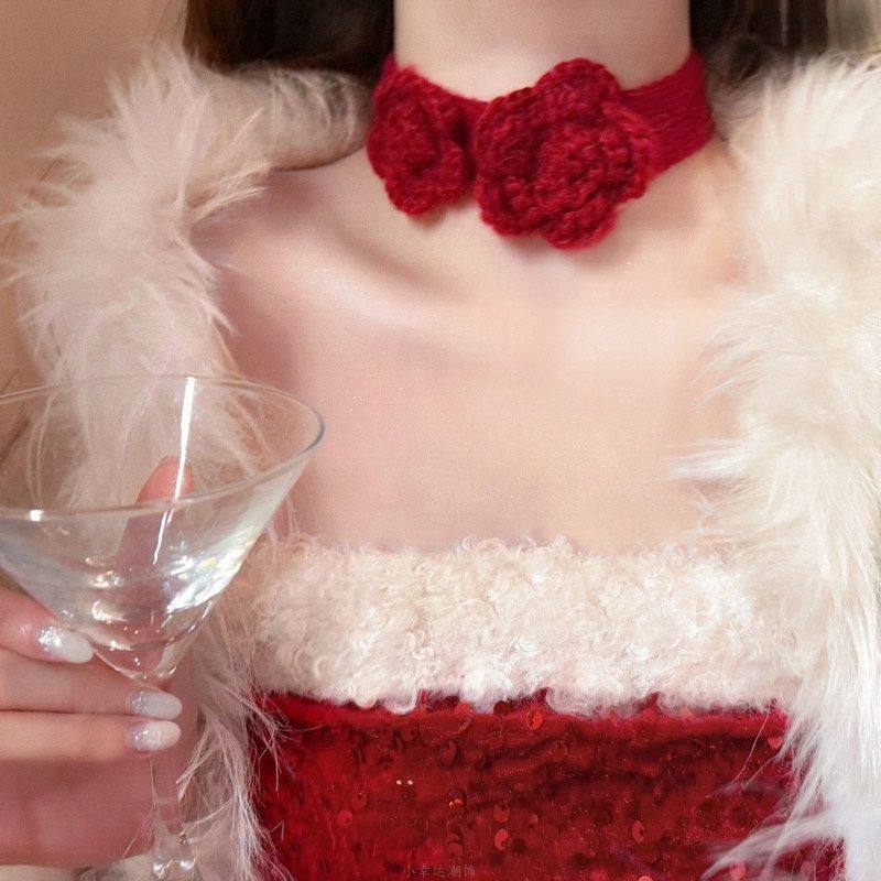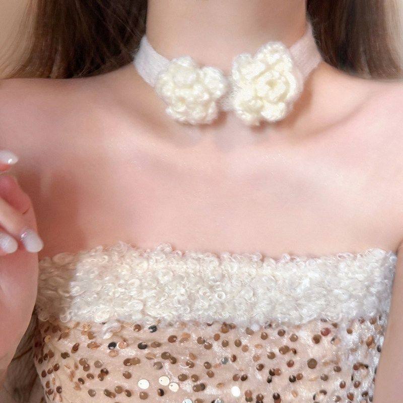 秋冬氛围感针织花朵颈链女高级感温柔气质小众毛衣链百搭项链配饰