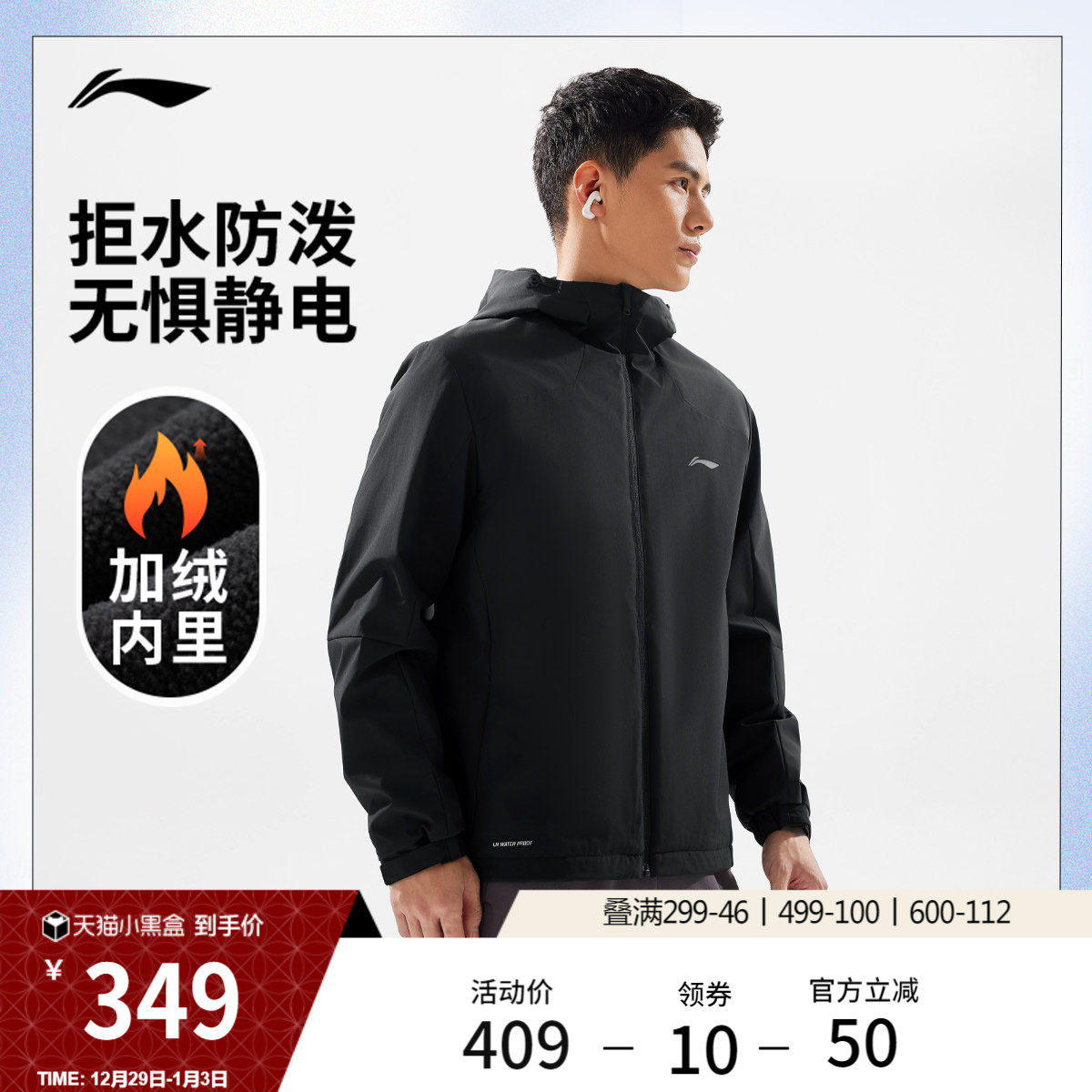 李宁外套男士新款健身系列冬季长袖上衣夹克加绒保暖梭织运动外套