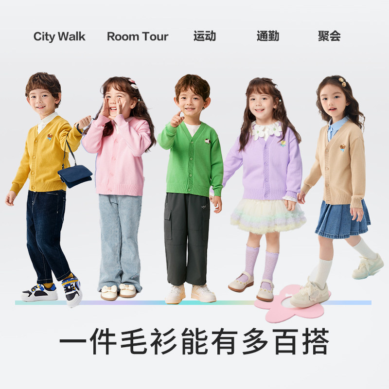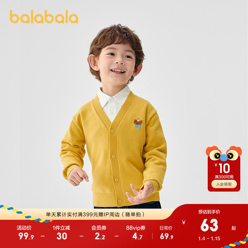 巴拉巴拉儿童毛衣女童开衫针织衫2025春装男童毛衫宝宝内搭上衣潮