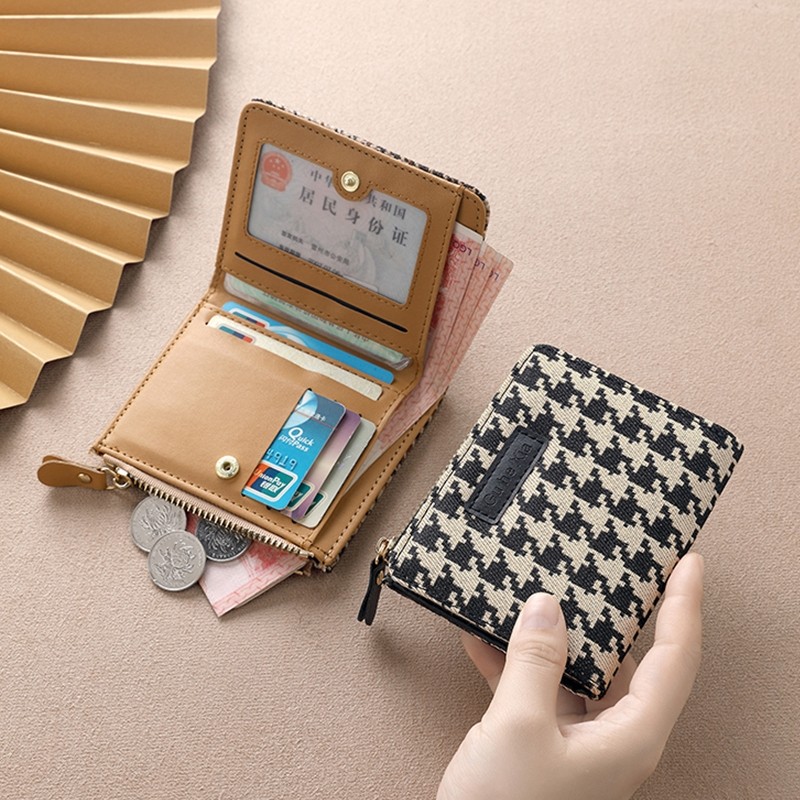 2025新款千鸟格精致高档小众设计钱包女短款女士折叠卡包钱包小巧