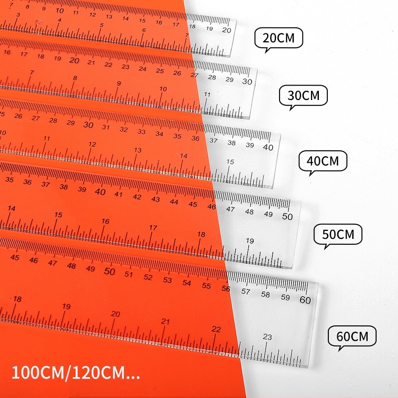 加厚耐磨直尺小学生专用透明尺子有机塑料玻璃尺20/30/40/50/60/100/120cm绘图测量划线尺文具丁字尺板尺刻度
