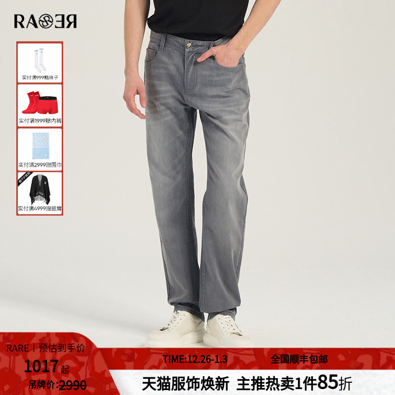 RARE威雅男裤 夏季新款长裤柔软薄款男士裤子灰色水洗牛仔裤