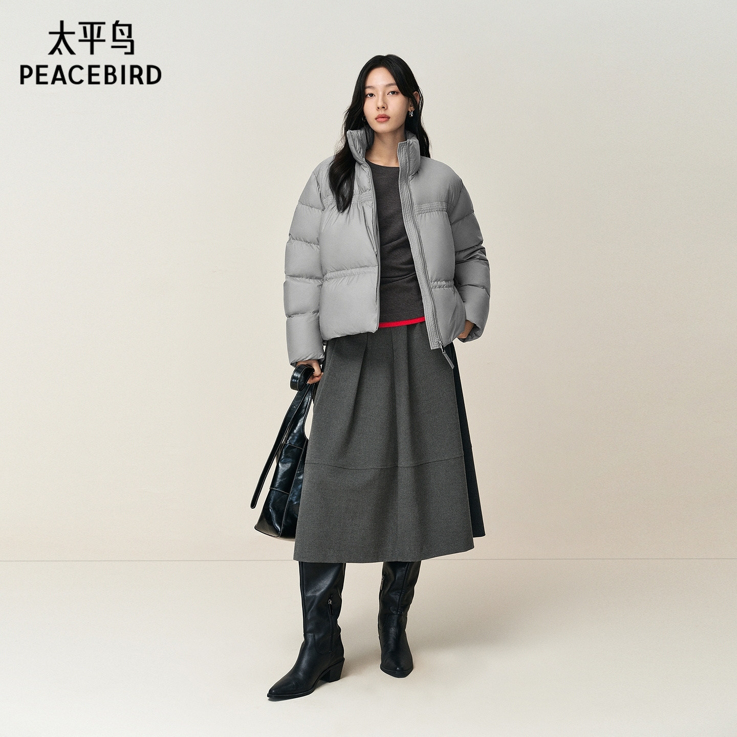 【商场同款】太平鸟立领泡芙短款羽绒服女品质白鸭绒A1ACF4A03