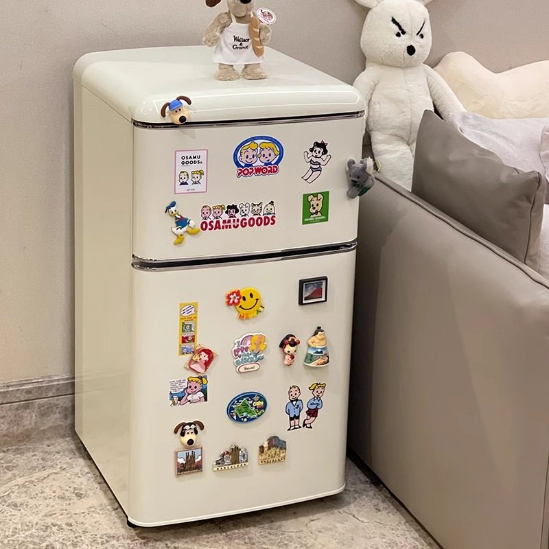 HCK哈士奇复古小冰箱冷冻冷藏迷你小型彩色奶油风可爱小吐司107L