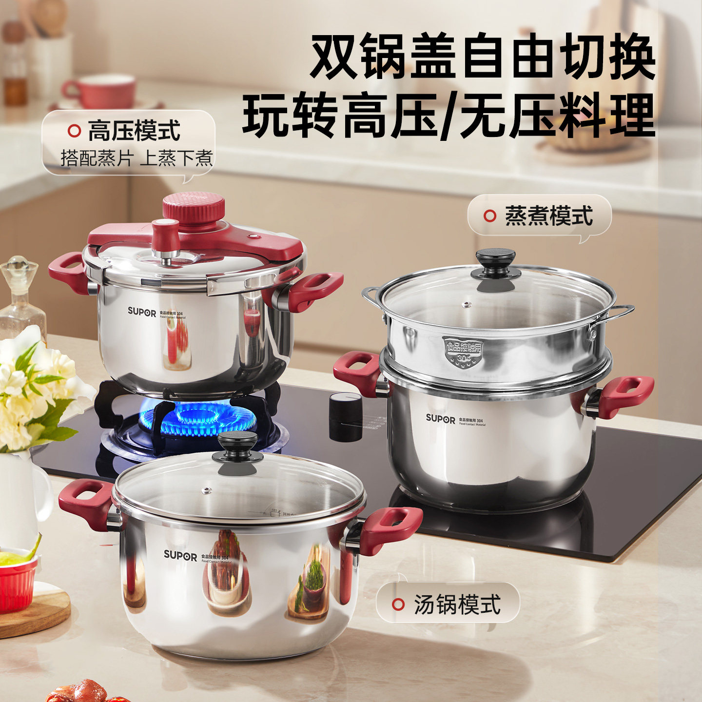 【重磅升级】苏泊尔新式压力锅防爆304不锈钢家用烹饪高压锅品质
