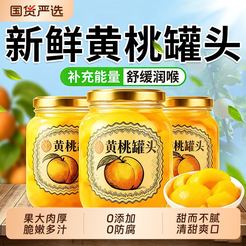 黄桃罐头官方旗舰店正品新鲜水果糖水整箱玻璃瓶装儿童即零食果园