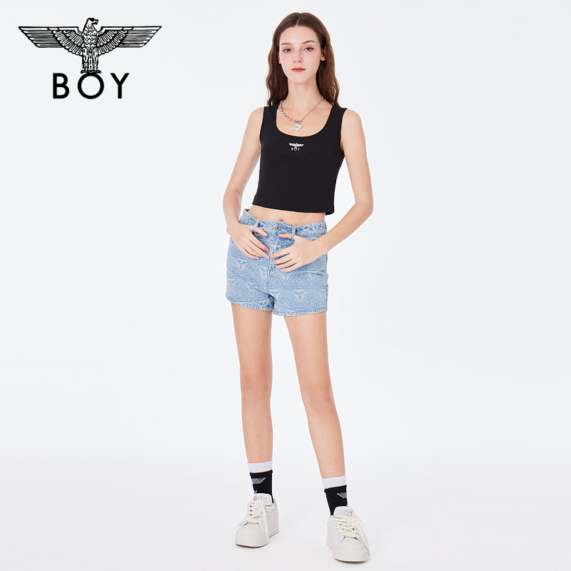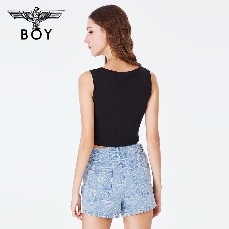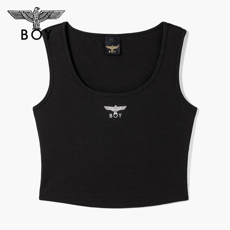 BOYLONDON夏女士黑色针织背心修身百搭时尚短款背心W02001