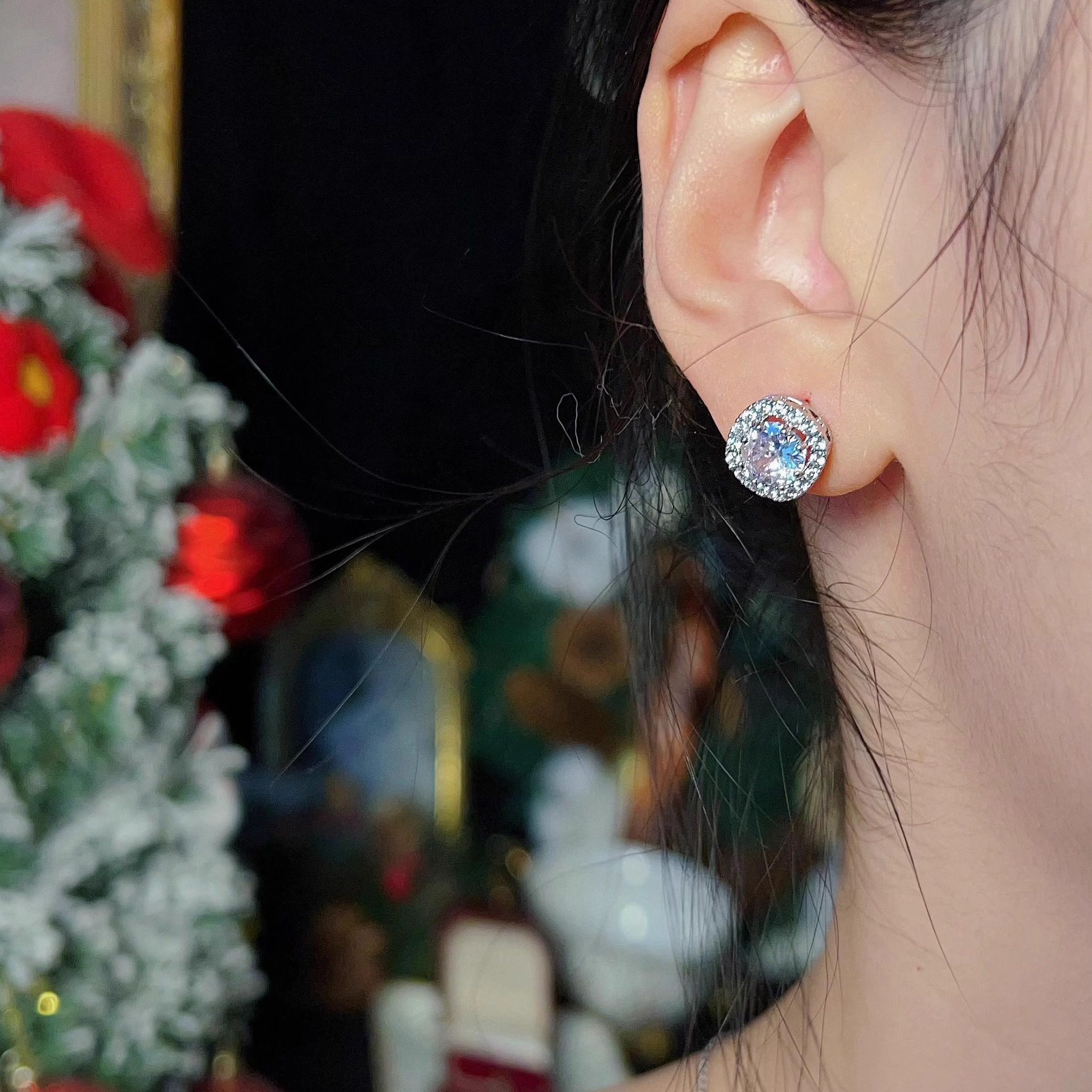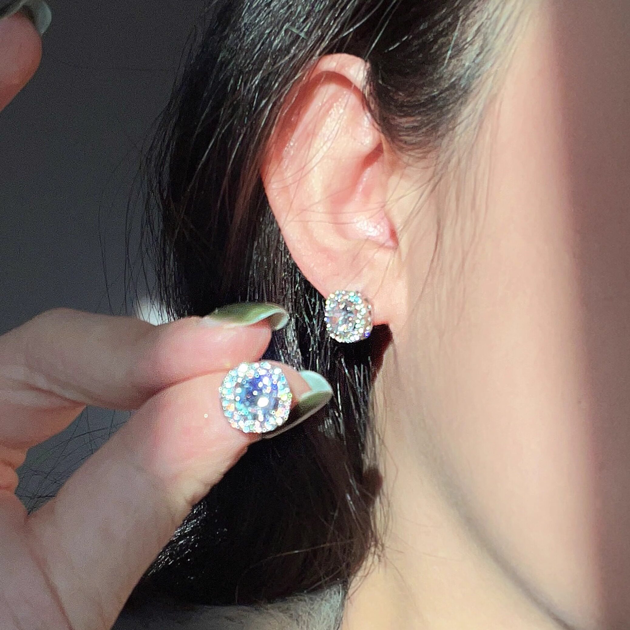 《克拉恋人》精致爆闪复古港风优雅高级感银色锆石满钻耳钉耳夹女