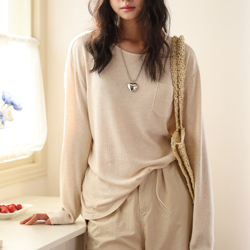 NOME(服饰)春夏天丝亚麻打底衫女25亲肤宽松口袋上衣莱赛尔罩衫
