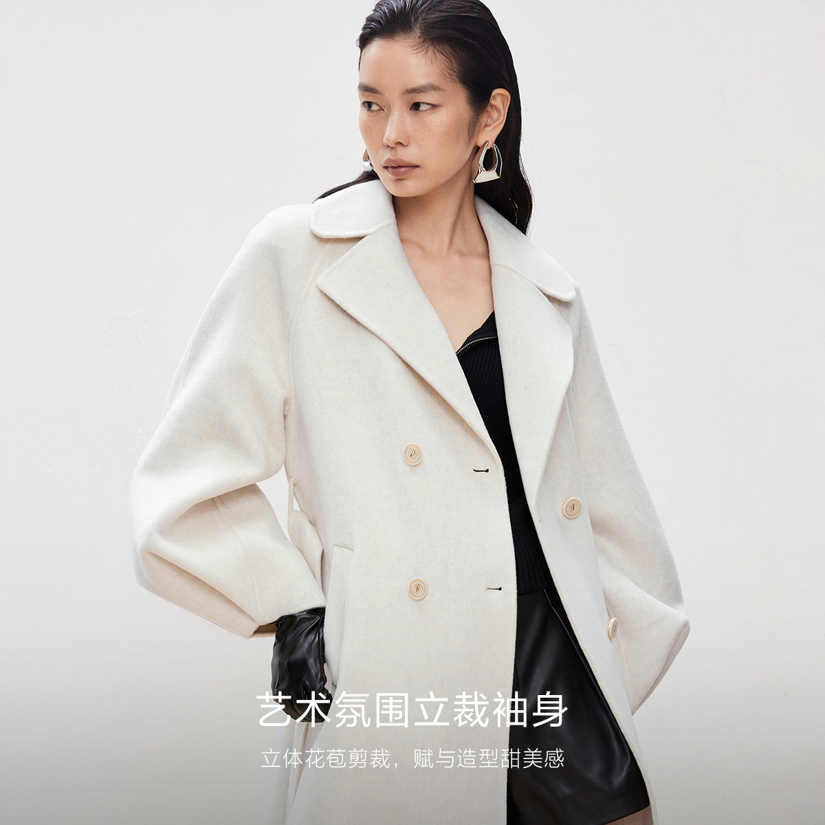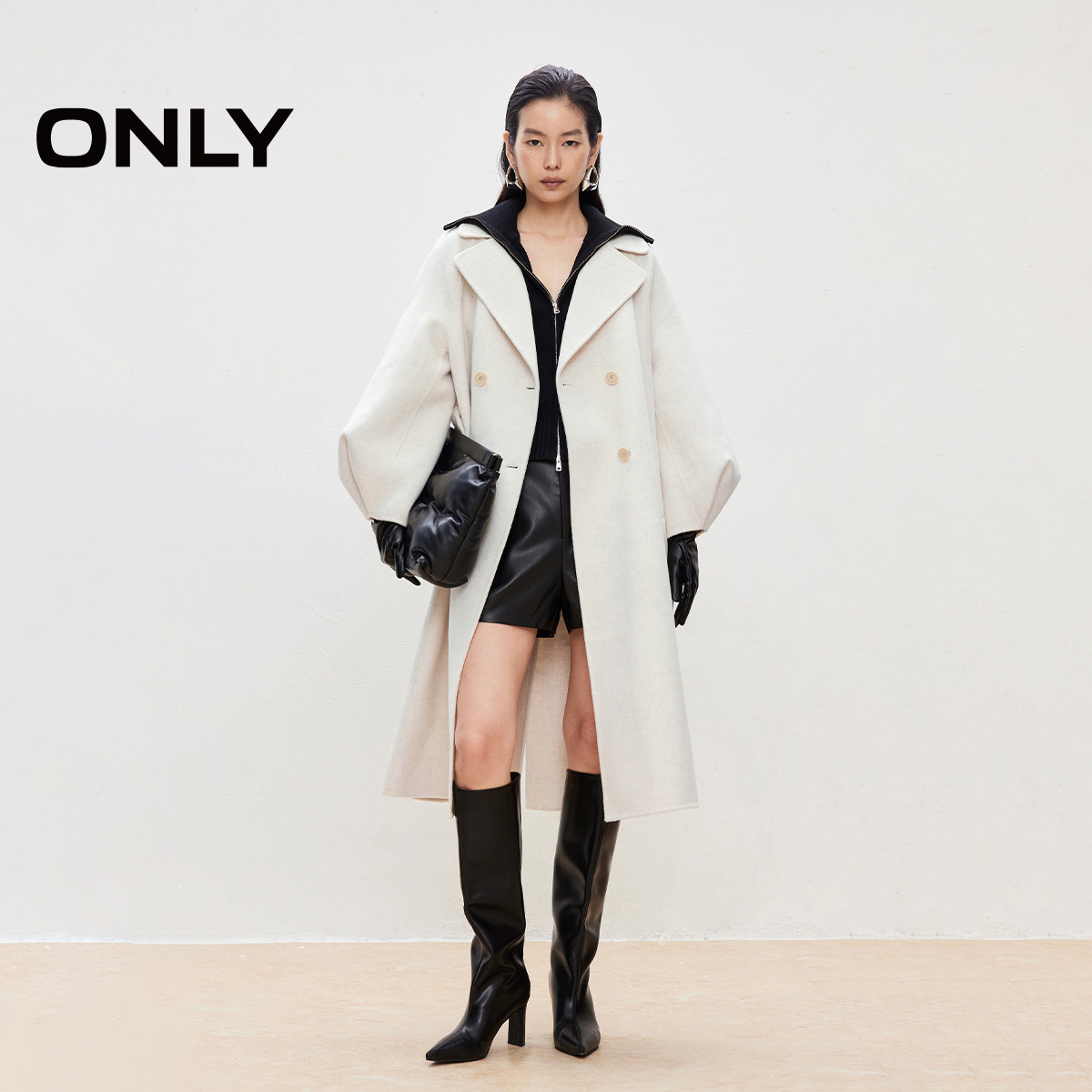 ONLY2025冬季新款花苞袖身设计100%绵羊毛宽松垂感毛呢大衣外套女