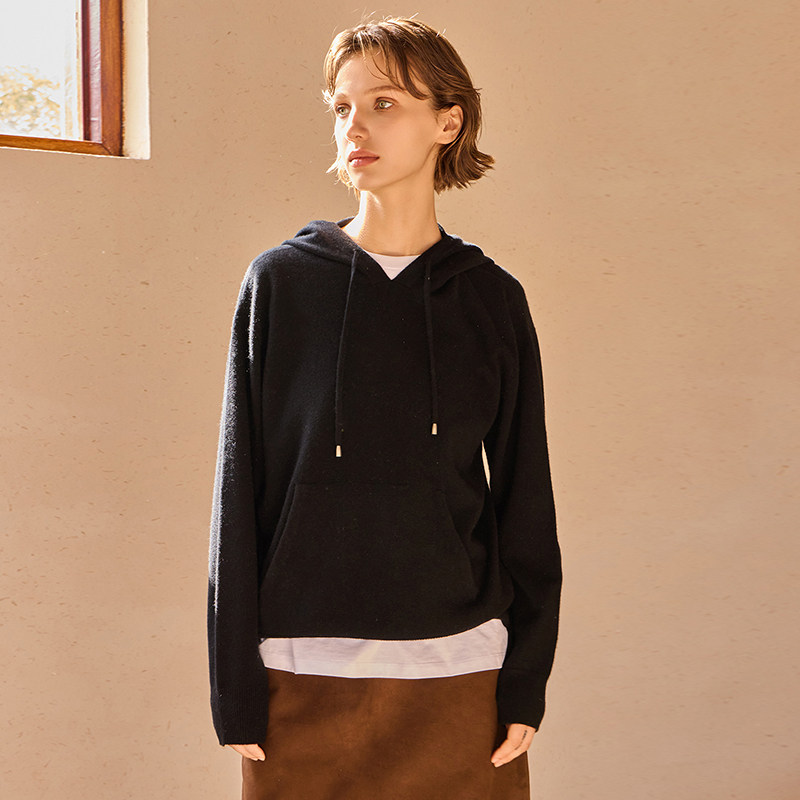 THEEASE舒适派【减龄】100纯山羊绒连帽衫休闲百搭宽松慵懒感卫衣