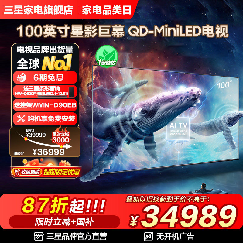 Samsung/三星 QA100QN80FJXXZ 100英寸Mini LED量子点AI电视