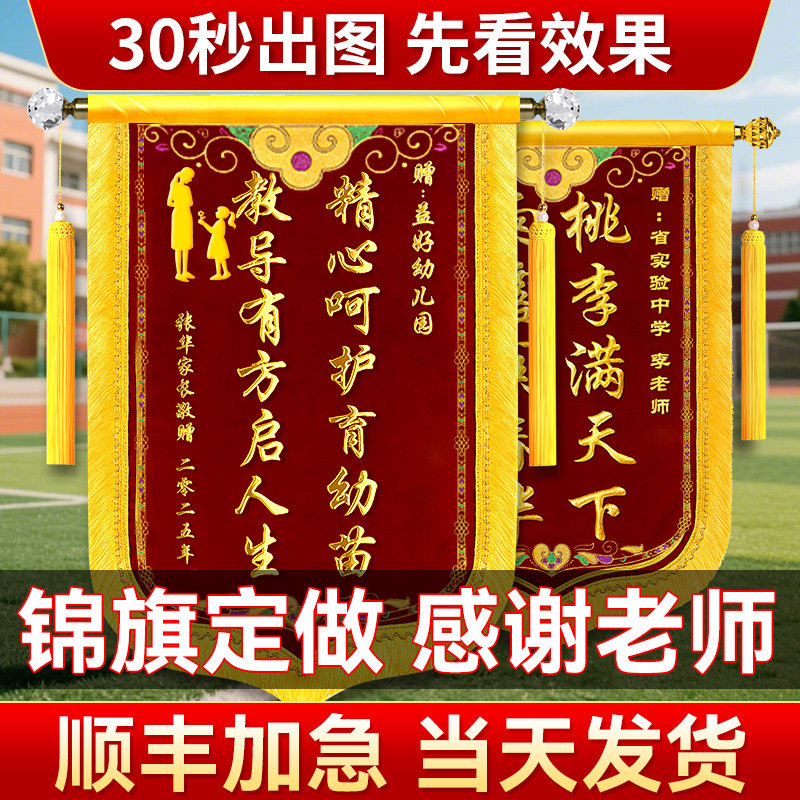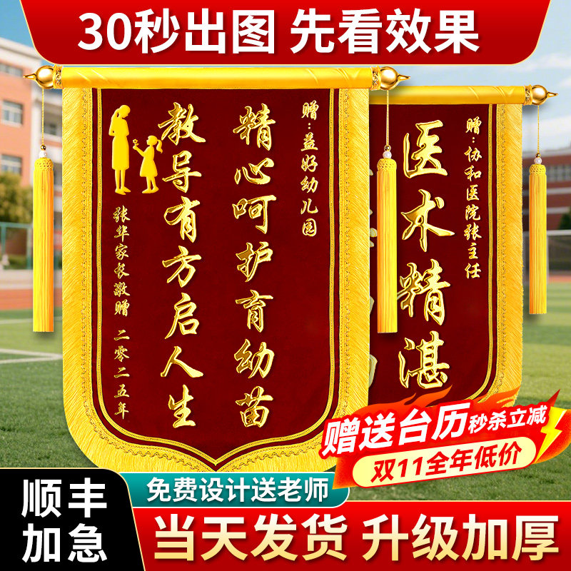 锦旗定制感谢老师医生定做送幼儿园老师学校培训中小学班主任毕业旌旗订做制作赠送服务医护产科医生高档锦旗