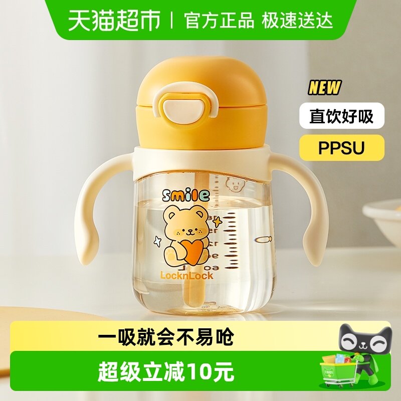 乐扣乐扣学饮杯宝宝PPSU直饮吸管奶瓶一岁以上儿童水杯家用牛奶杯
