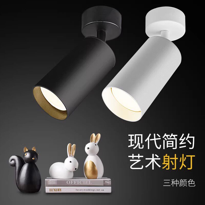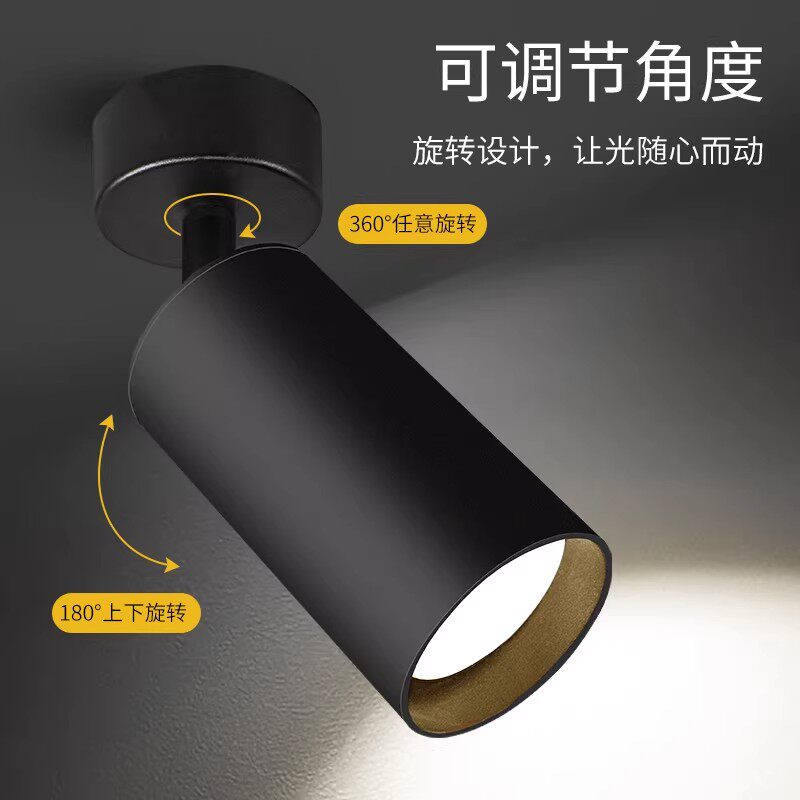 明装射灯可调角度单个家用小轨道灯聚光LED天花灯筒灯客厅卧室
