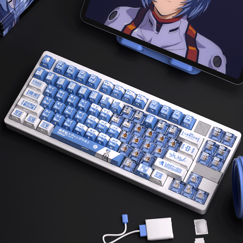 密探EVA绫波丽250键+双拼侧刻PC双拼透光键帽搭配机械蜂X80 X100