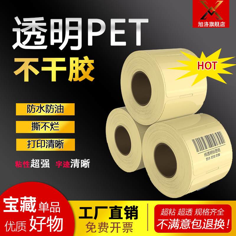 高端透明PET不干胶标签纸打印贴纸定制打孔防水防油撕不烂工厂商标LOGO印刷服装吊牌标签裂化妆品封口贴