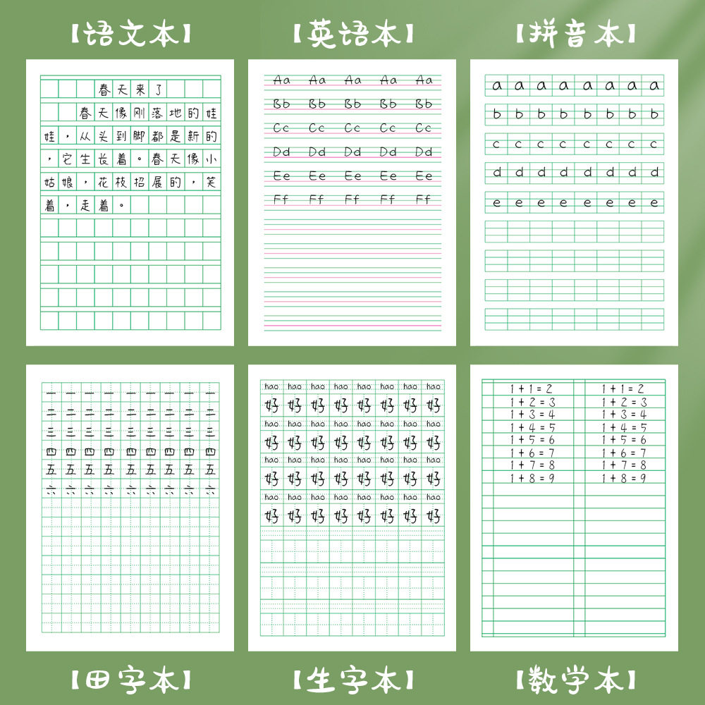护眼小学生写字本一年级田字本作业本幼儿园儿童生字本拼音本本子