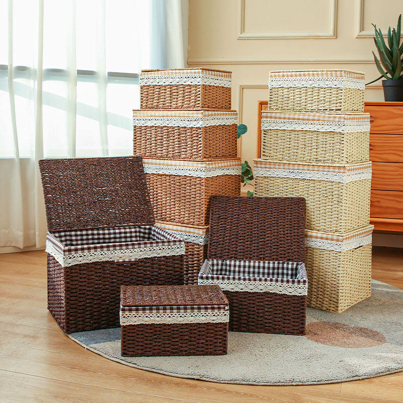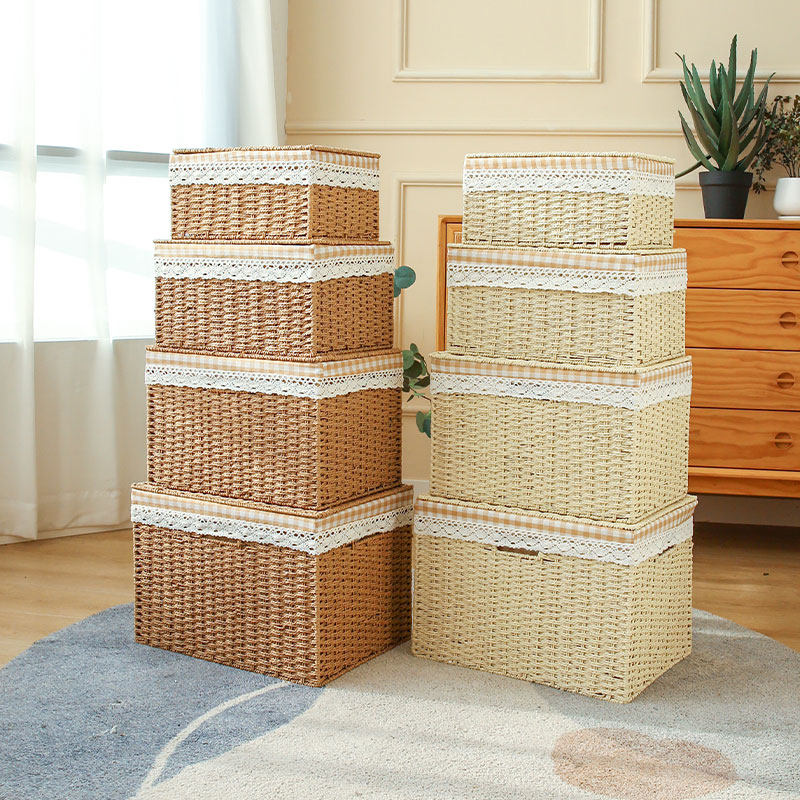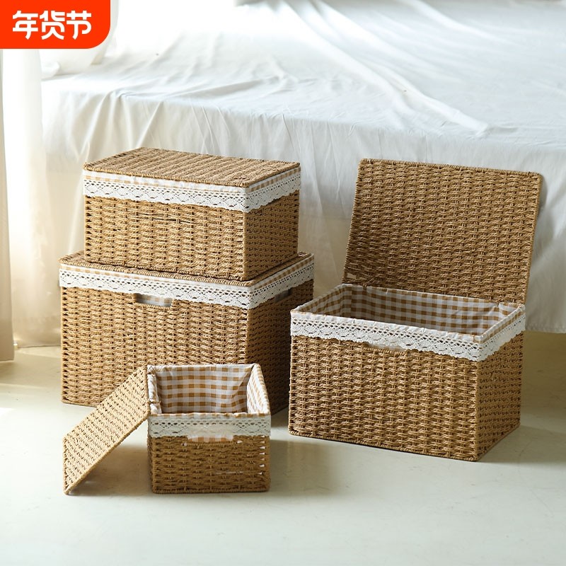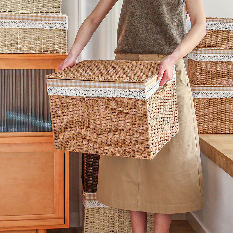 收纳盒带盖编织筐整理篮零食收纳箱衣服收纳箱子玩具桌面抽屉衣柜