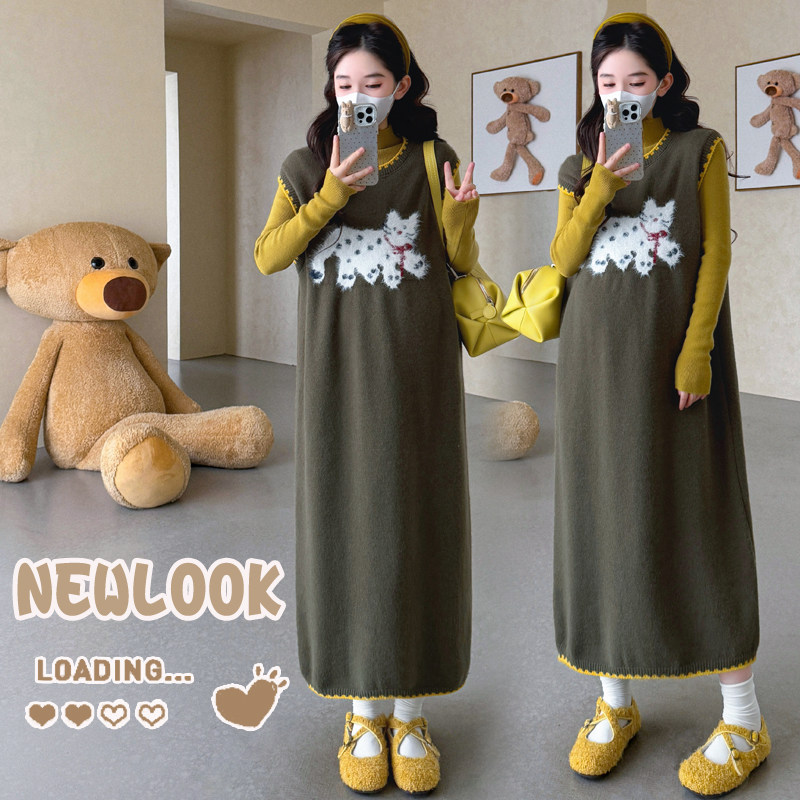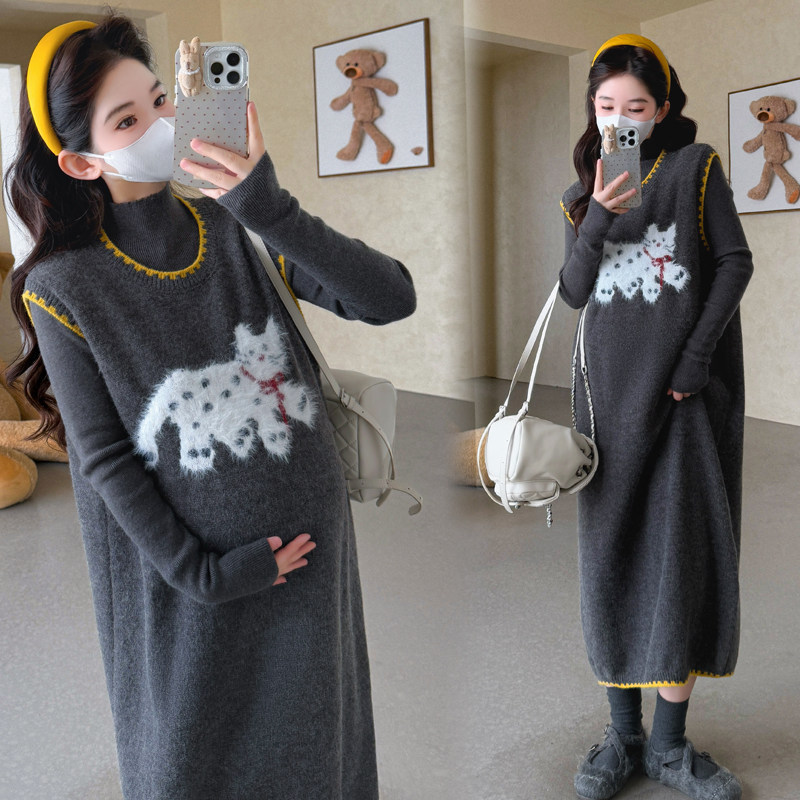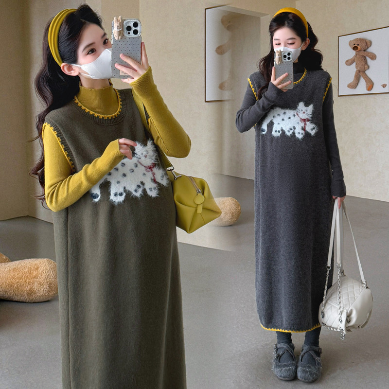 孕妇装秋冬季套装2025新款慵懒风打底衫高级叠穿毛呢背心裙两件套