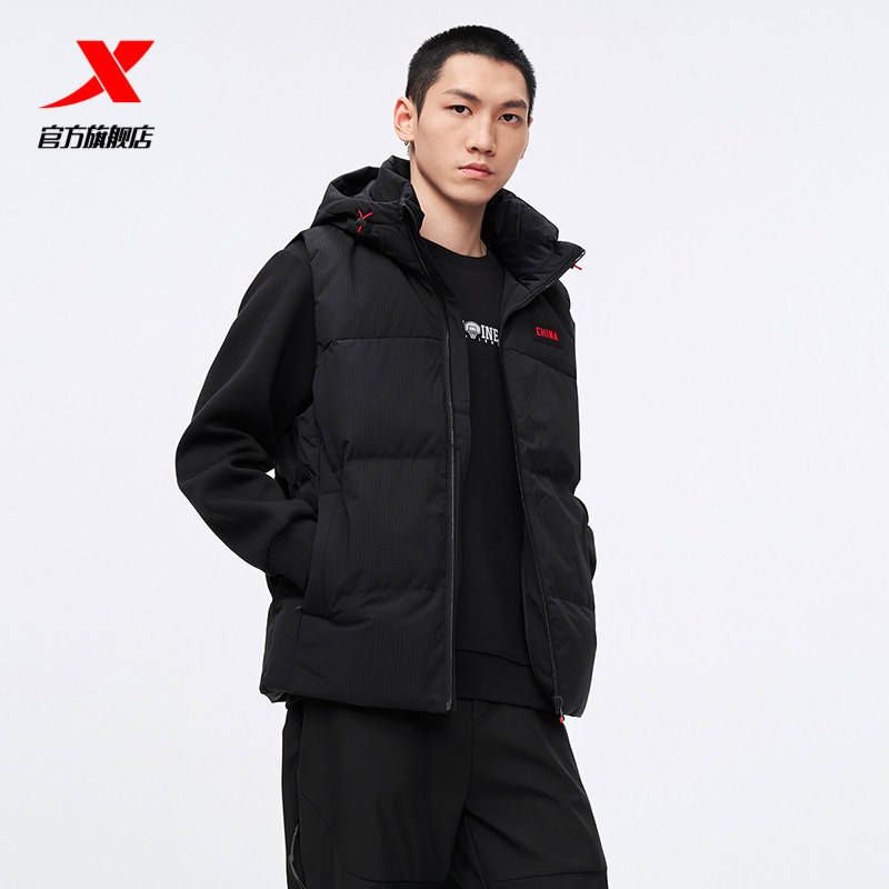 特步羽绒马甲男2025年冬季新款运动上衣保暖防风外套975429260138