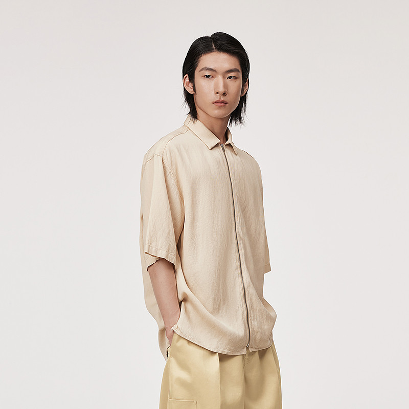 速写奥莱outlets男装春秋折扣新款衬衫翻领宽松短袖休闲衬衣时尚