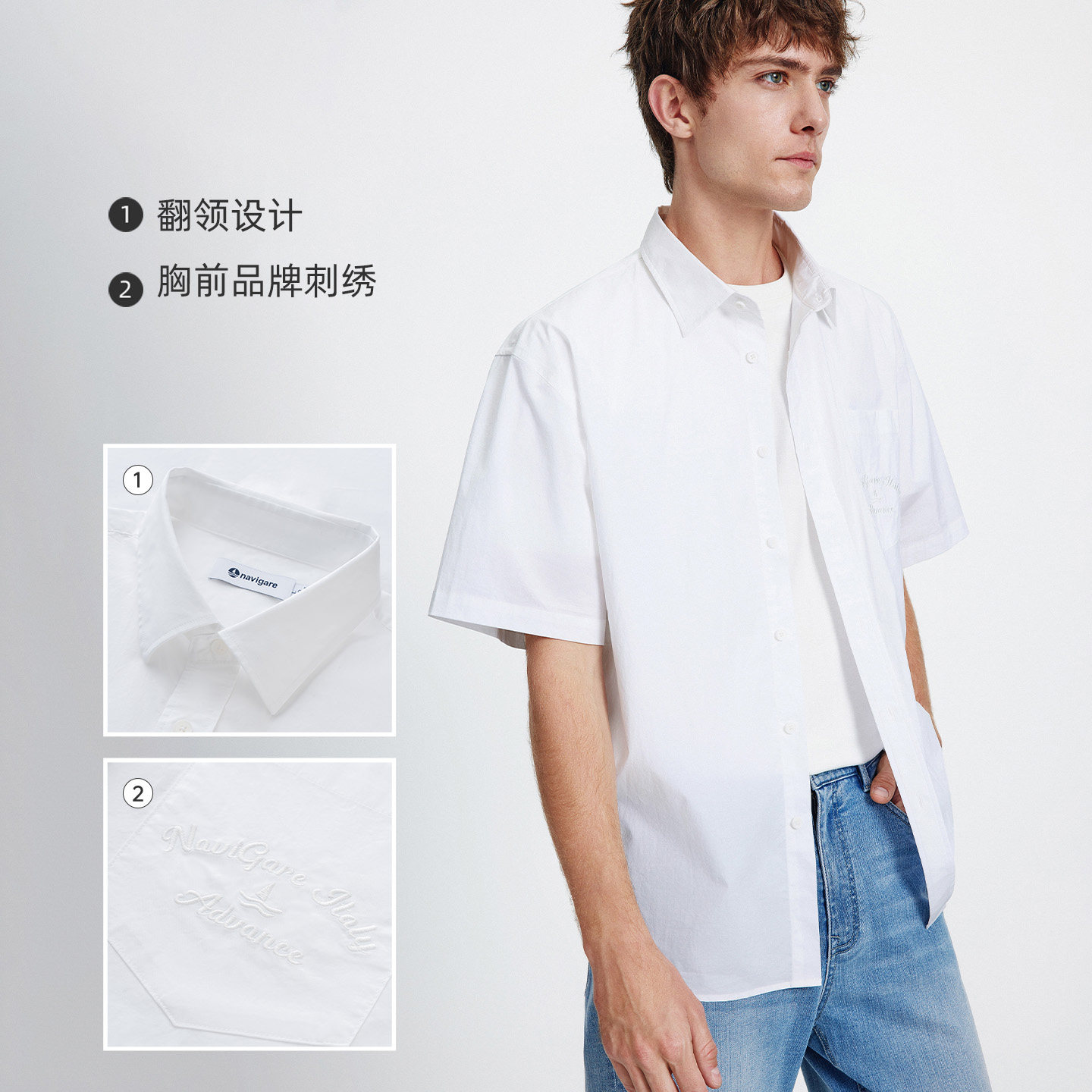 Navigare意大利小帆船宽松短袖衬衫男2026夏季休闲翻领衬衣外套