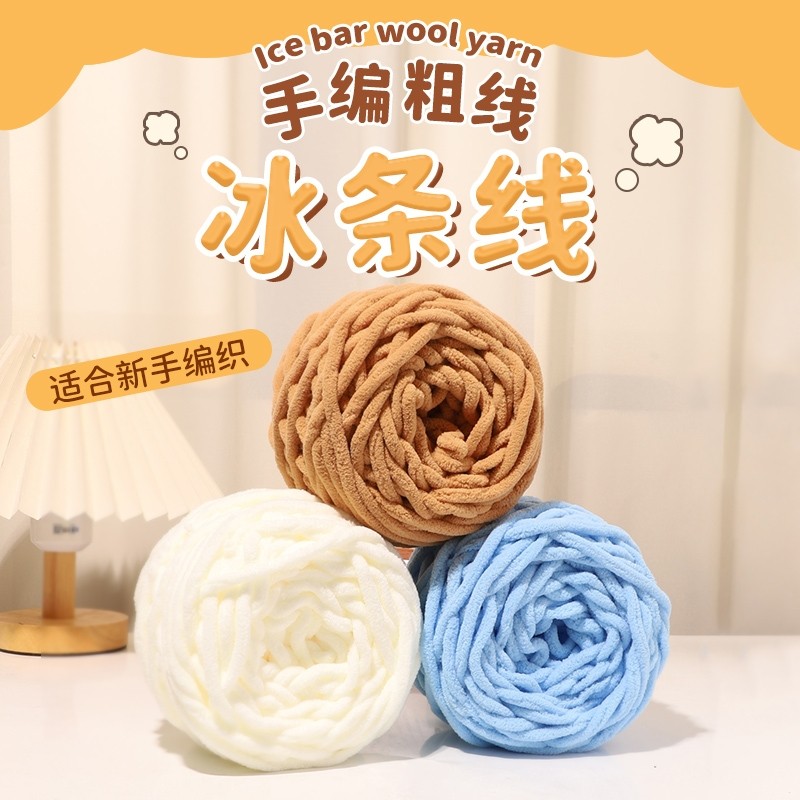 冰条线粗毛线手工编织围巾diy自织围脖钩织拖鞋毯子坐垫毛衣