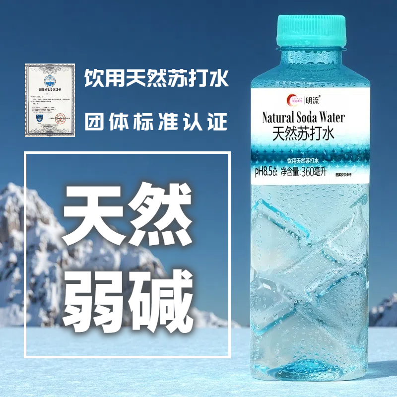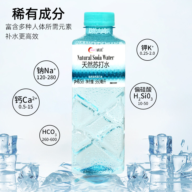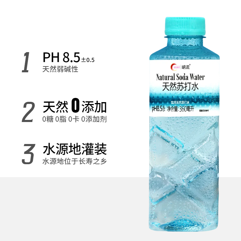明流天然苏打水整箱弱碱性PH8.5饮用水360ml无添加无糖非纯净水