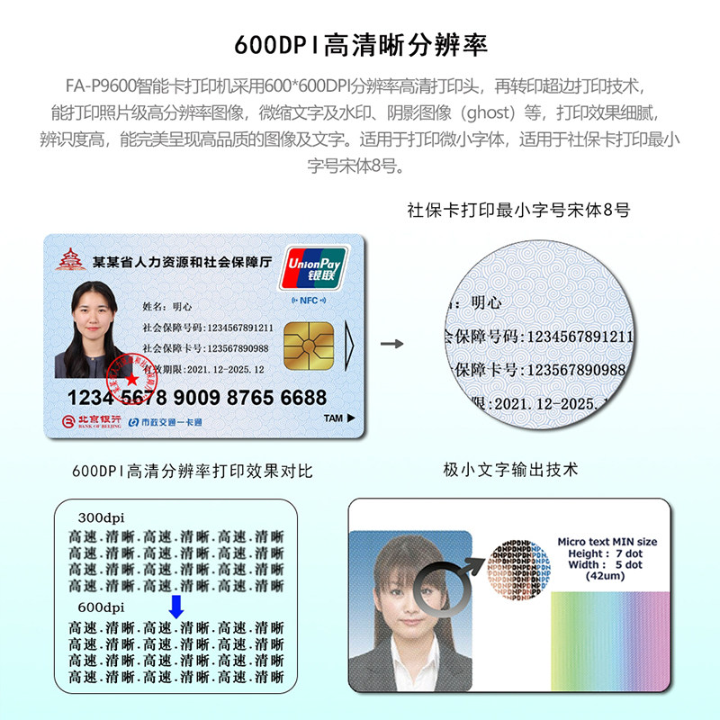 法高FAGOO FA-P9600双面600DPI制卡机 社保卡工作证健康证打印机