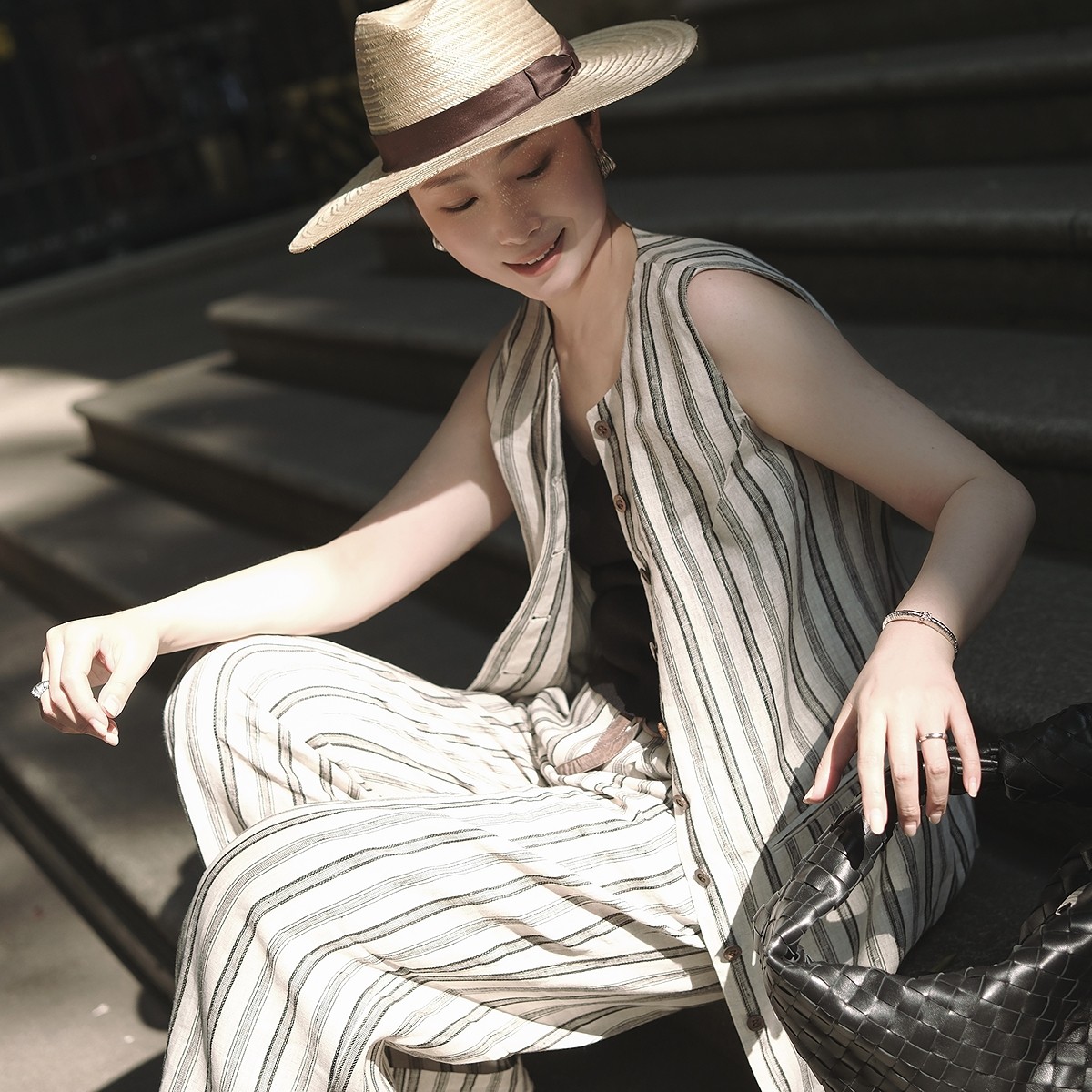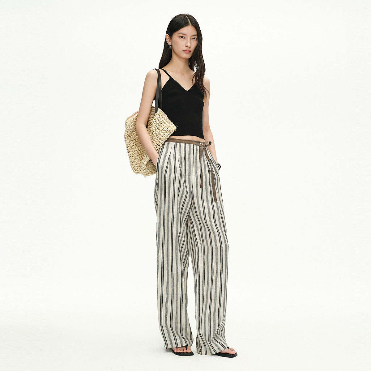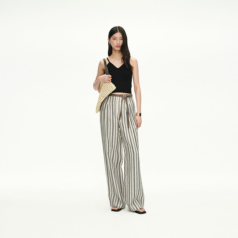【明星同款】MESUX米岫25夏老钱亚麻风条纹阔腿休闲裤MNMUQ402